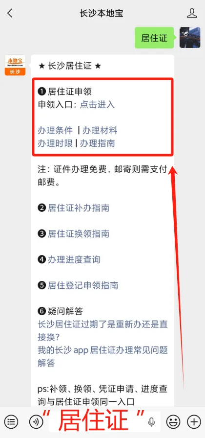 还可以长按下方二维码,关注并进入【长沙本地宝】,在后台聊天框回复【居住证】,即可直接获得居住证办理入口啦!