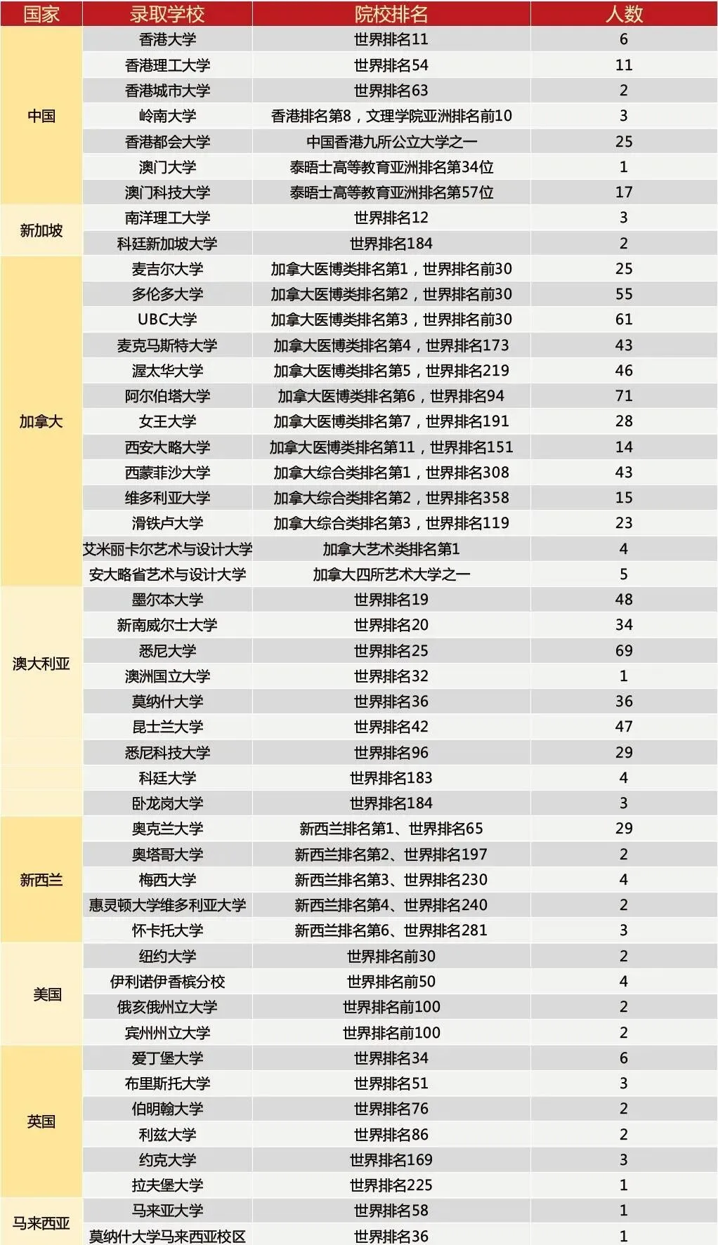 毕业生遍布加拿大、美国、英国、澳大利亚、新加坡、中国香港、中国澳门、马来西亚的知名学府,充分彰显了学校卓越的国际教育实力和人才培养成果。