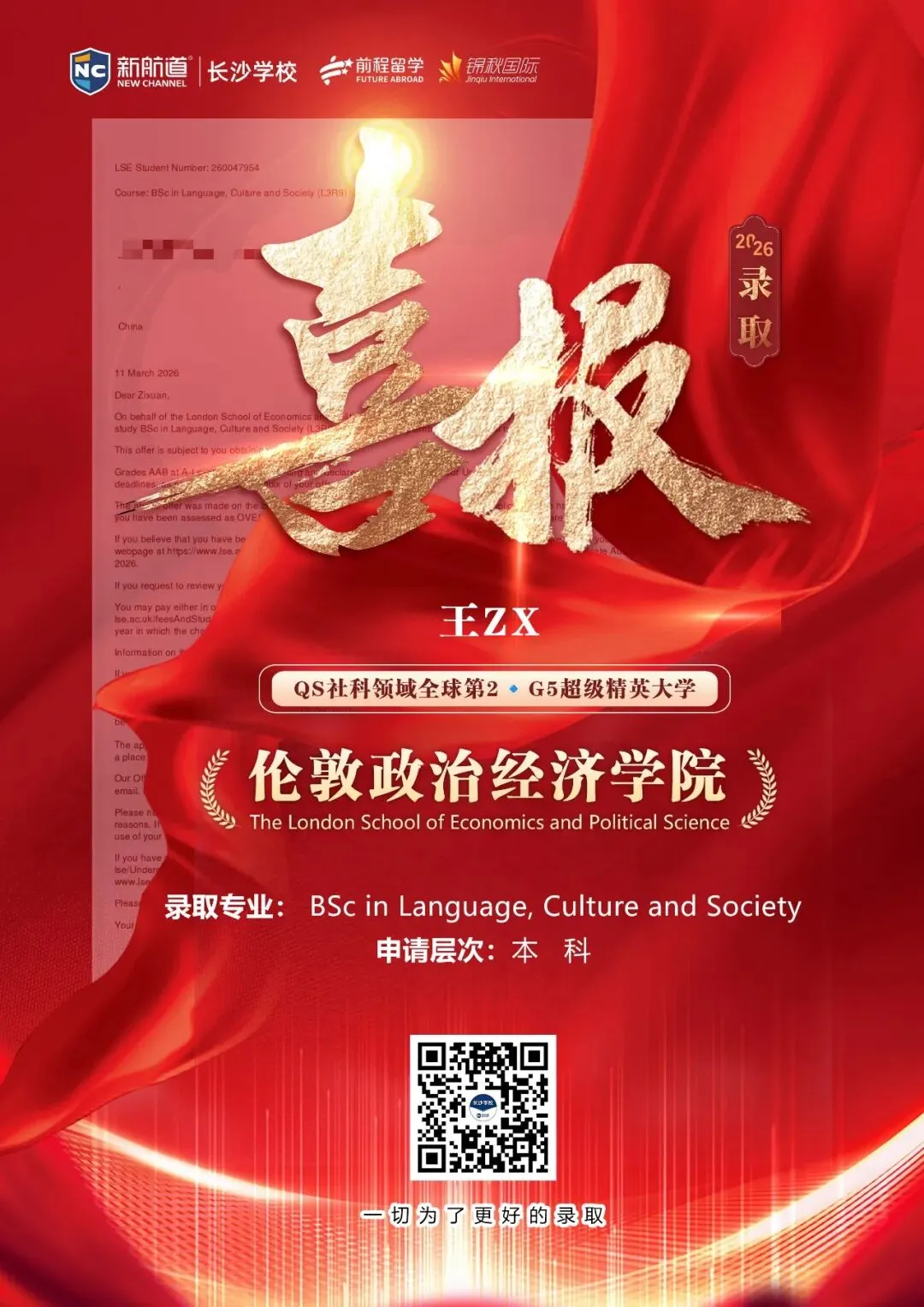 喜大普奔!长沙新航道锦秋一站式W学员成功收获伦敦政治经济学院BSc in Language, Culture and Society 录取Offer!!👇👇伦敦政治经济学院(LSE)成立于1895年,是一所位于英国伦敦的世界知名的顶尖公立研究型大学。伦敦政治经济学院专注于社会科学研究,被誉为“世界一级的高等教育与科学研究机构”,在全球政、商、法、学界极负盛名。该校是伦敦联邦大学、罗素大学集团和欧洲社会科学大学联盟的成员,与牛津大学、剑桥大学、帝国理工大学、伦敦大学学院共同誉为“G5超级精英大学”,也是英国的“金三角名校”。