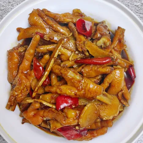 【姜辣蛇/姜辣凤爪】做法速写:这菜的灵魂全在姜上。老姜得按斤放,切大片,和干辣椒一起在油锅里爆香,把那股子辛辣劲儿全逼出来。食材下锅爆炒,再加高汤慢煨。出锅时,姜片金黄,汤汁浓稠油亮。咬一口,那辣味不是直冲脑门,而是顺着喉咙往下钻,暖烘烘的,特下饭。