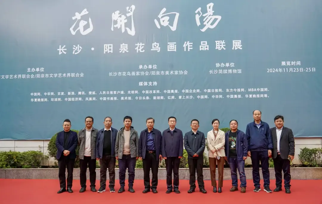 11月23日,由长沙市文学艺术界联合会、阳泉市文学艺术界联合会主办,长沙市花鸟画家协会、阳泉市美术家协会承办,长沙简牍博物馆协办的“花开向阳——长沙·阳泉花鸟画作品联展”在湖南长沙简牍博物馆开幕。