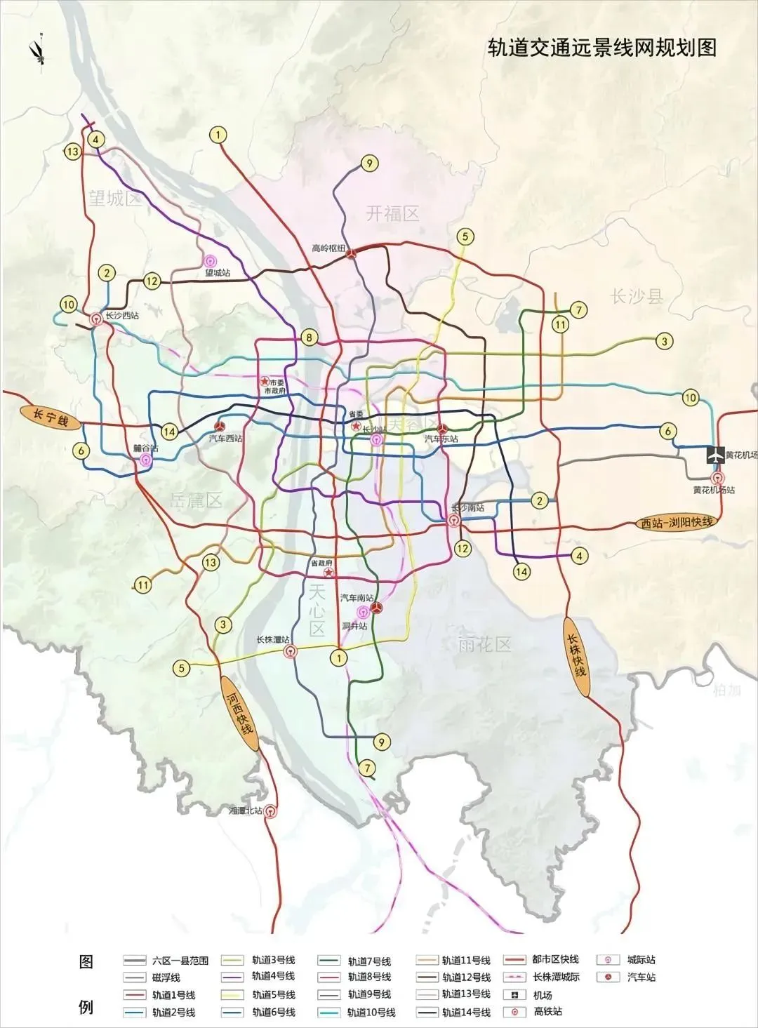 “《长沙市轨道交通线网规划修编》已于2020年底经市政府批复。轨道交通线网规划是根据城市的现状及其发展规划、城市的交通需求、城市的经济发展水平等,综合确定轨道交通线网的合理规模;在对城市结构与土地利用、城市客流需求预测的空间分布特点以及线路可实施性进行定性与定量分析的基础上,形成线网规划方案。