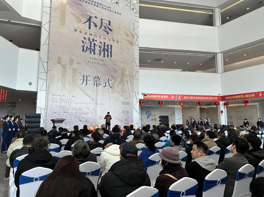本报讯 1月12日,由湖南省文联指导,湖南美术馆、湖南省油画学会主办的“不尽潇湘——湖南油画的开拓与绵延”展览在湖南美术馆开幕。该展作为湖南省首个成功入选文化和旅游部2024年全国美术馆青年策展人扶持计划入选项目的展览,既是对湖南油画发展历程的一次深情回望,也是对未来前景的无限展望。湖南省文联党组书记、副主席(主持日常工作)乐奕致辞并宣布展览开幕,湖南省文联副主席、省美协主席旷小津,湖南美术馆馆长、省美协副主席田绍登,参展老艺术家代表邓平祥,湖南省油画学会主席、湖南师范大学博士生导师党朝阳分别在开幕式上致辞。该展策展人、湖南省油画学会副主席何玲主持了开幕式。