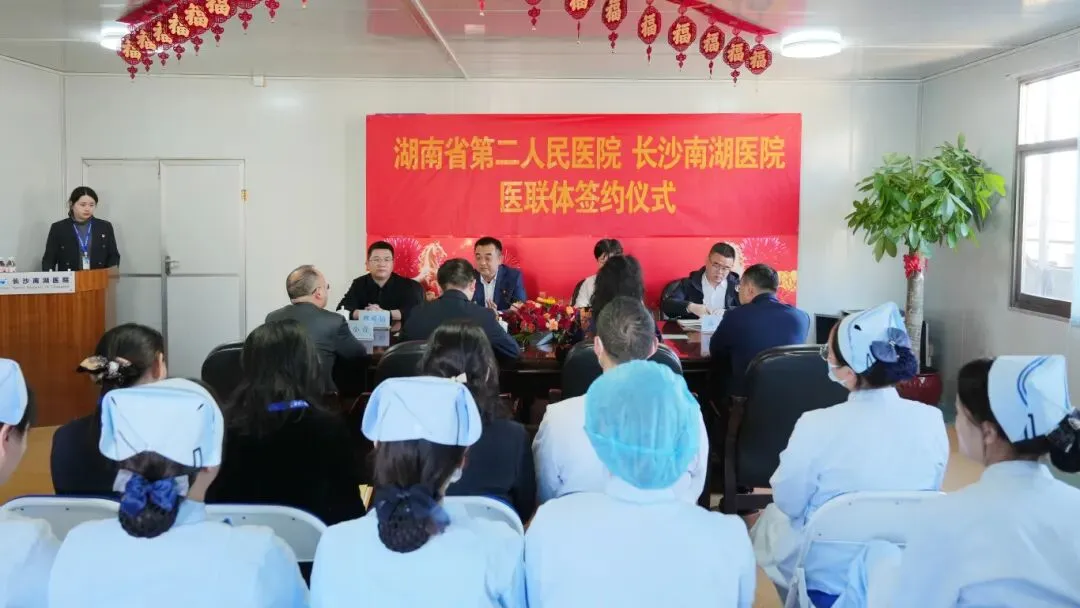 为积极响应“健康湖南”战略部署,深入落实“十五五”卫生健康规划中关于“强基层、固基础、保基本”的政策导向,进一步推动优质医疗资源下沉、完善分级诊疗体系,3月11日,长沙南湖医院与湖南省第二人民医院(湖南省脑科医院)正式签署医联体合作协议。