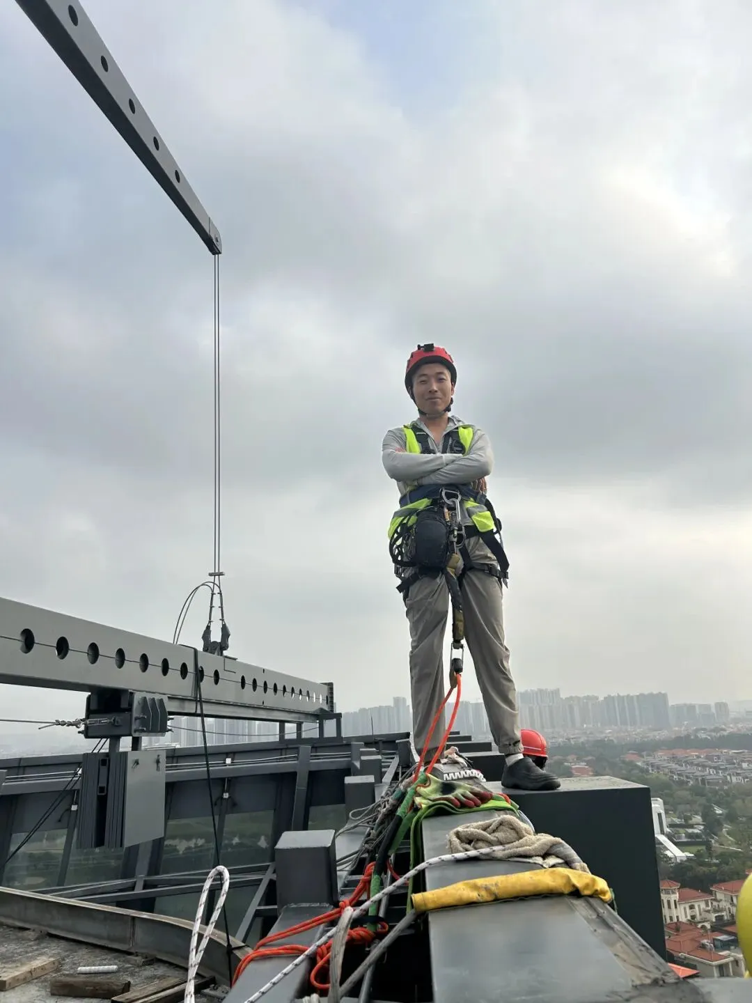 而在刚入行不久的一次高空作业中,由于绳扣没有系紧,他从固定点猛地跌落了一整层的高度,幸运的是安全绳马上锁死,但那一瞬间的重力加速度还是让他大脑一片空白。