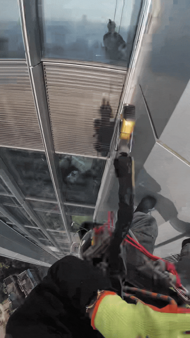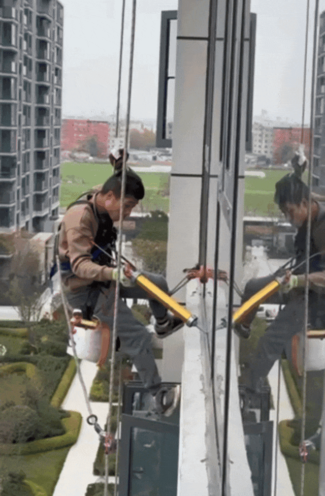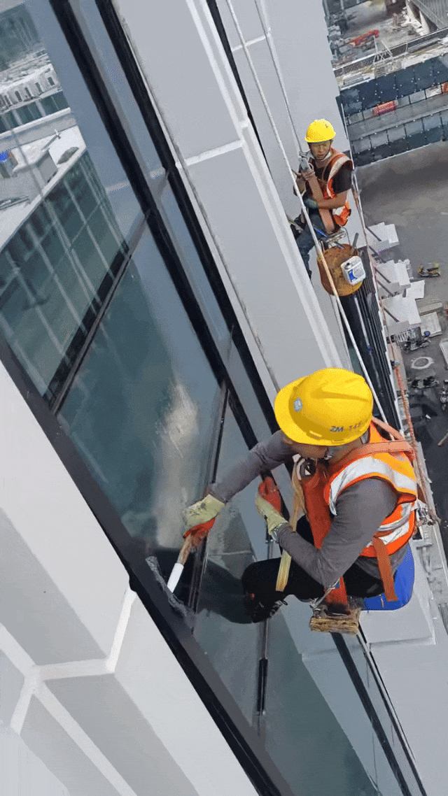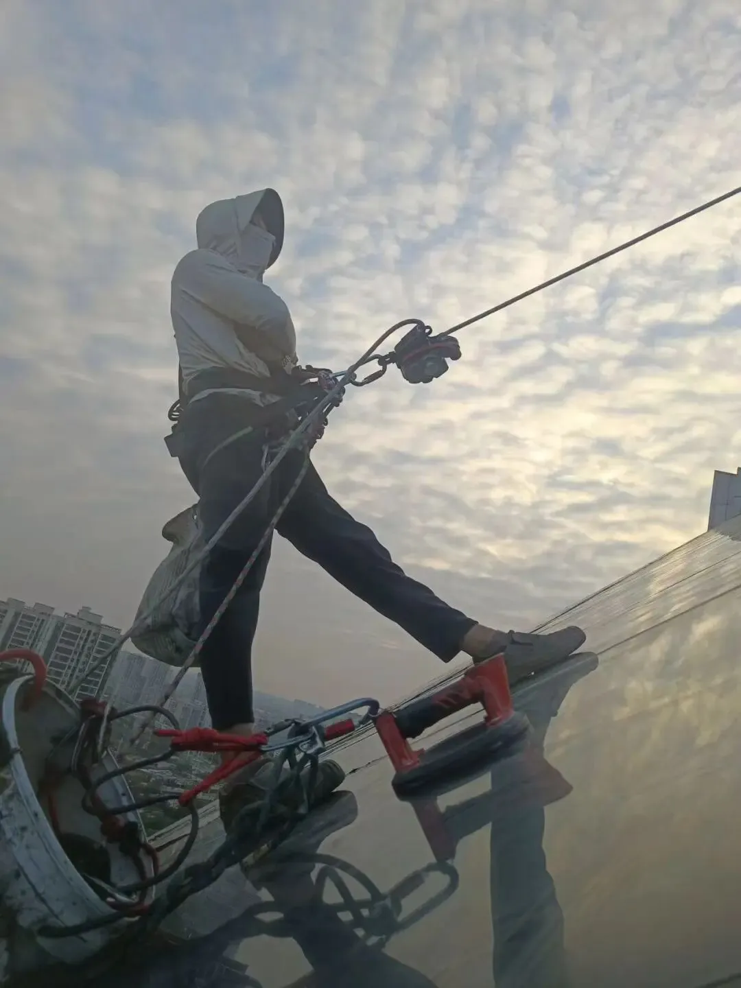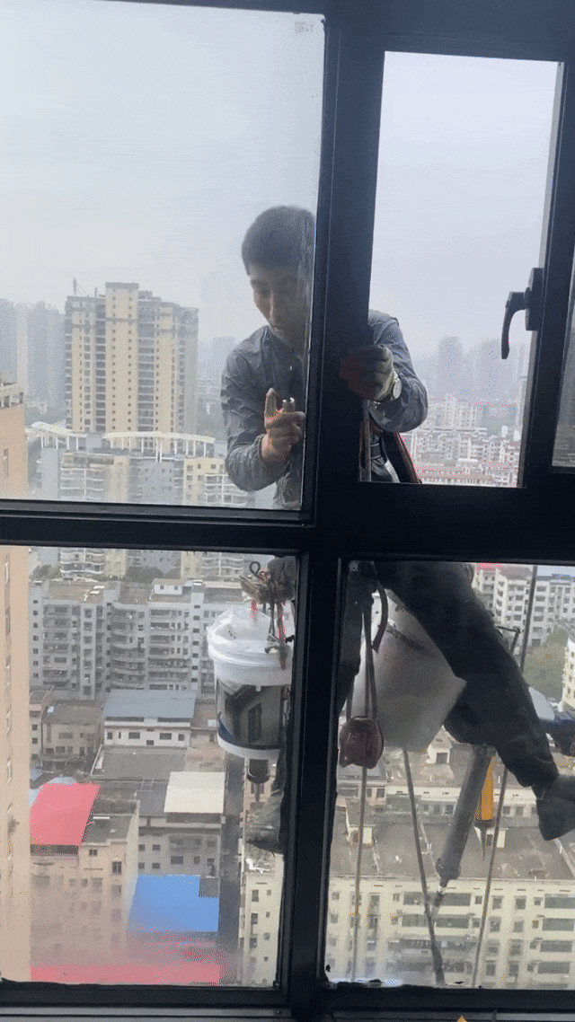 “胆子大只是门槛,心细活儿好才是核心。”阿魏的高空作业涵盖了清洗、防水、维修,甚至救援,他最拿手的是“玻璃打胶”和“划痕修复”,这是极度依赖手感的工艺,尤其是在几十层楼的高空,身体随风晃动的情况下。