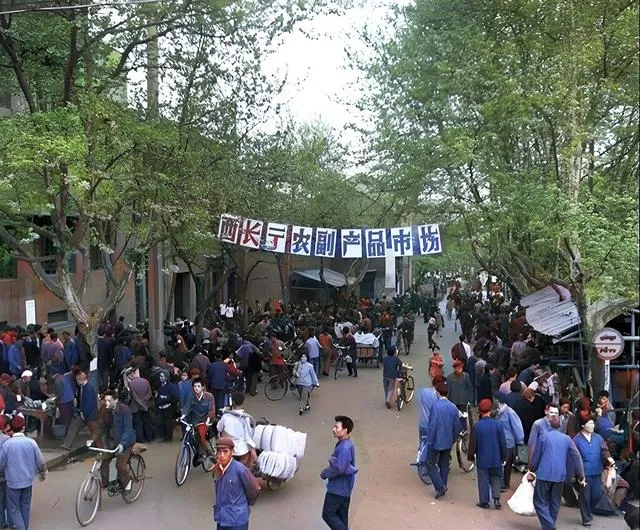80年代的农贸市场,得数西长街最为热闹。骑着自行车、肩挑菜篮子的、推着小木车的,大家在这里讨价还价,小贩的吆喝声、菜篮子的碰撞声,交织出老长沙最**“接地气”**的生活画面。