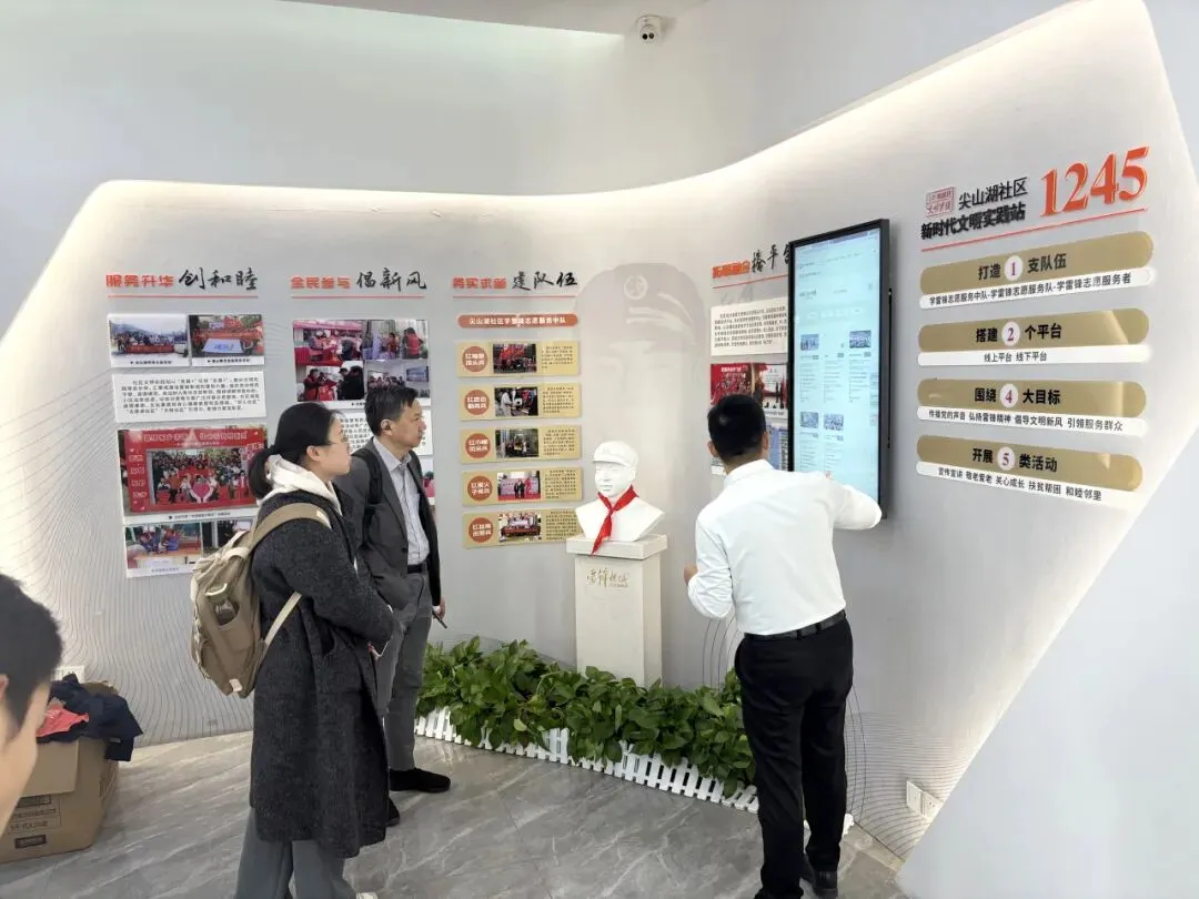 下午,邓国胜教授一行在湘江新区东方红街道尖山湖社区实地观摩了党群服务中心、便民服务站、慈善超市和青年创客工坊等慈善服务阵地,深入了解数字化手段在服务社区居民、动员志愿者的具体实践。