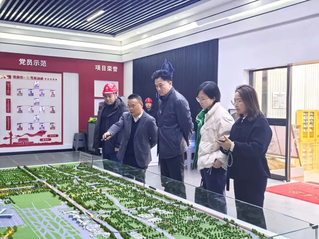 在项目现场,调研组通过观看沙盘模型演示、宣传视频以及数据展板,系统、直观地了解了当前片区的整体规划布局、基础设施项目建设的最新进度,以及智慧梁场的生产运营、技术创新等情况,对现阶段片区所取得的系列成效予以高度肯定。