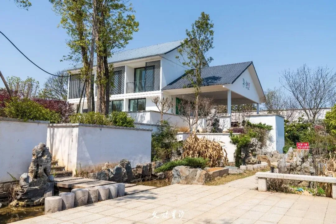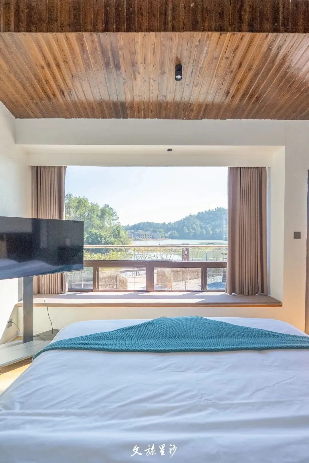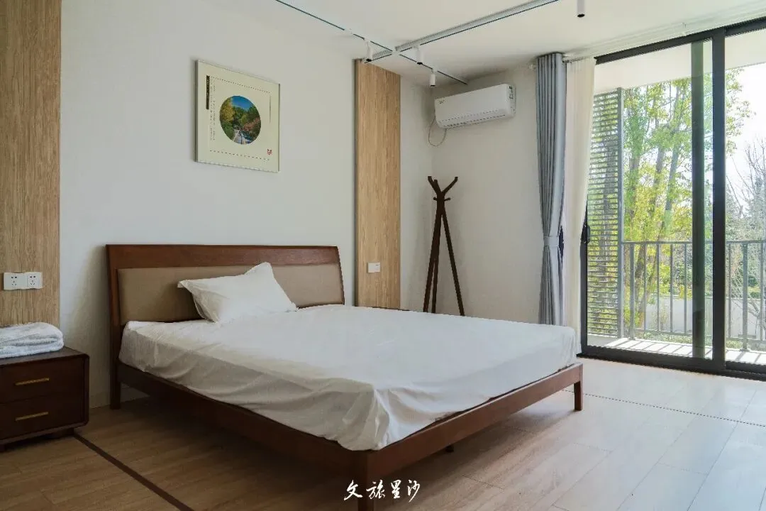 舍不得走的话,可以到水映山房住一晚,民宿有着中式庭院的韵味,躺在房间里就能欣赏湖景。