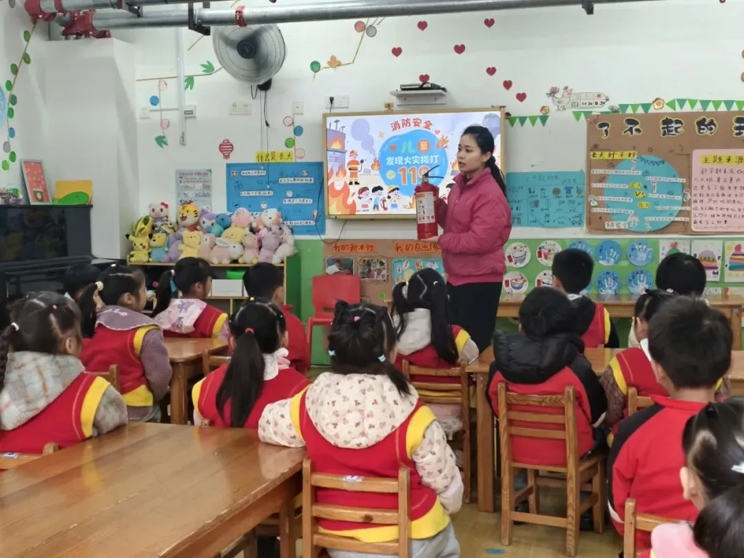 演练前,各班教师结合幼儿年龄特点开展消防安全教育活动。老师们化身“安全讲师”,通过图片讲解、情景模拟、互动问答等形式,把原本抽象的消防知识变得生动有趣。