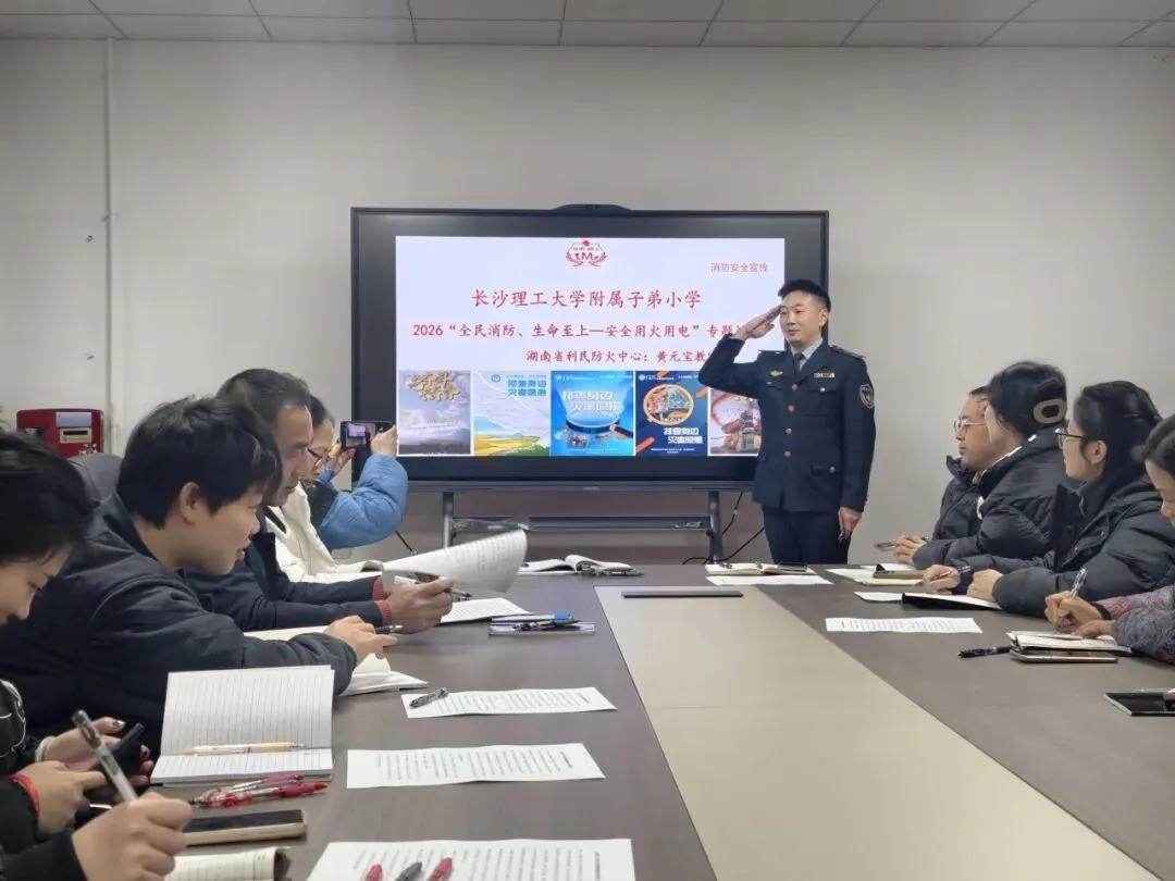 会议首个环节,学校特邀湖南省利民防火中心黄元宝教官,开展“全民消防、生命至上-安全用火用电”专题消防安全宣传。黄教官结合典型火灾案例,围绕校园用火用电规范、火灾隐患排查、初期灭火与逃生自救等核心内容展开讲解,贴合校园实际、实操性强,进一步强化了全体教职工的消防安全意识,夯实了平安校园建设的消防基础。