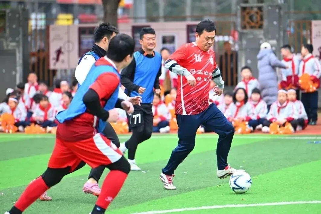 活动邀请湘超联赛球员与学校“爸爸足球队”球员共同亮相,通过专业球员与家长代表同场互动,让学生近距离感受足球运动。