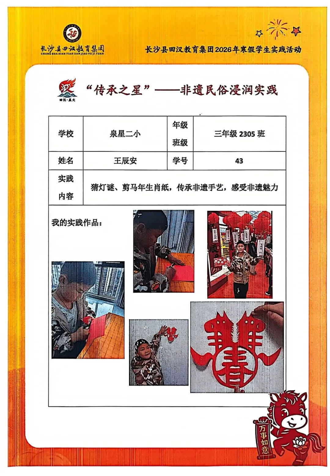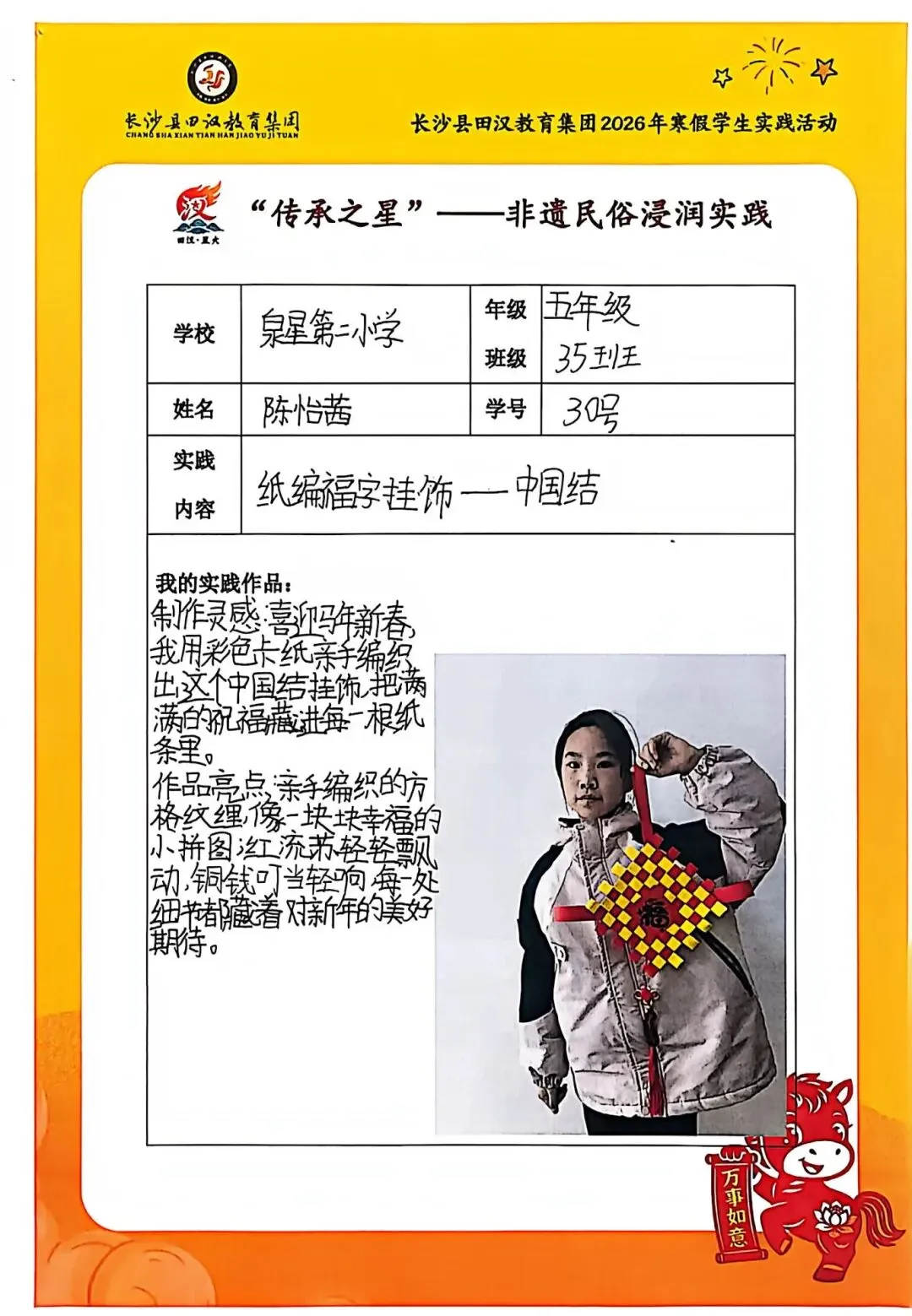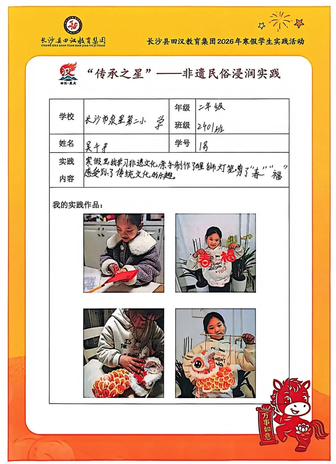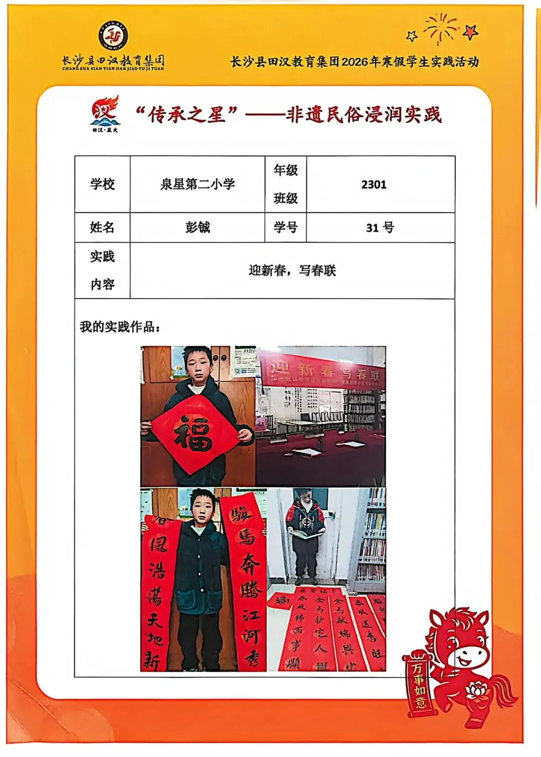 “星火”耀春归 骏马踏新程——长沙市泉星第二小学寒假实践活动成果展