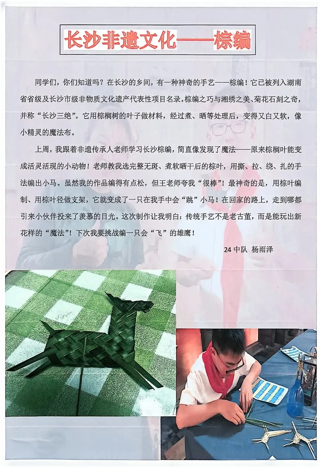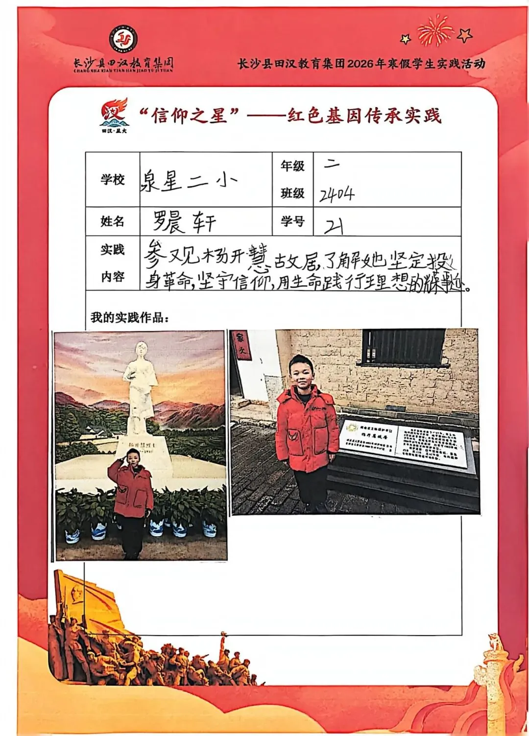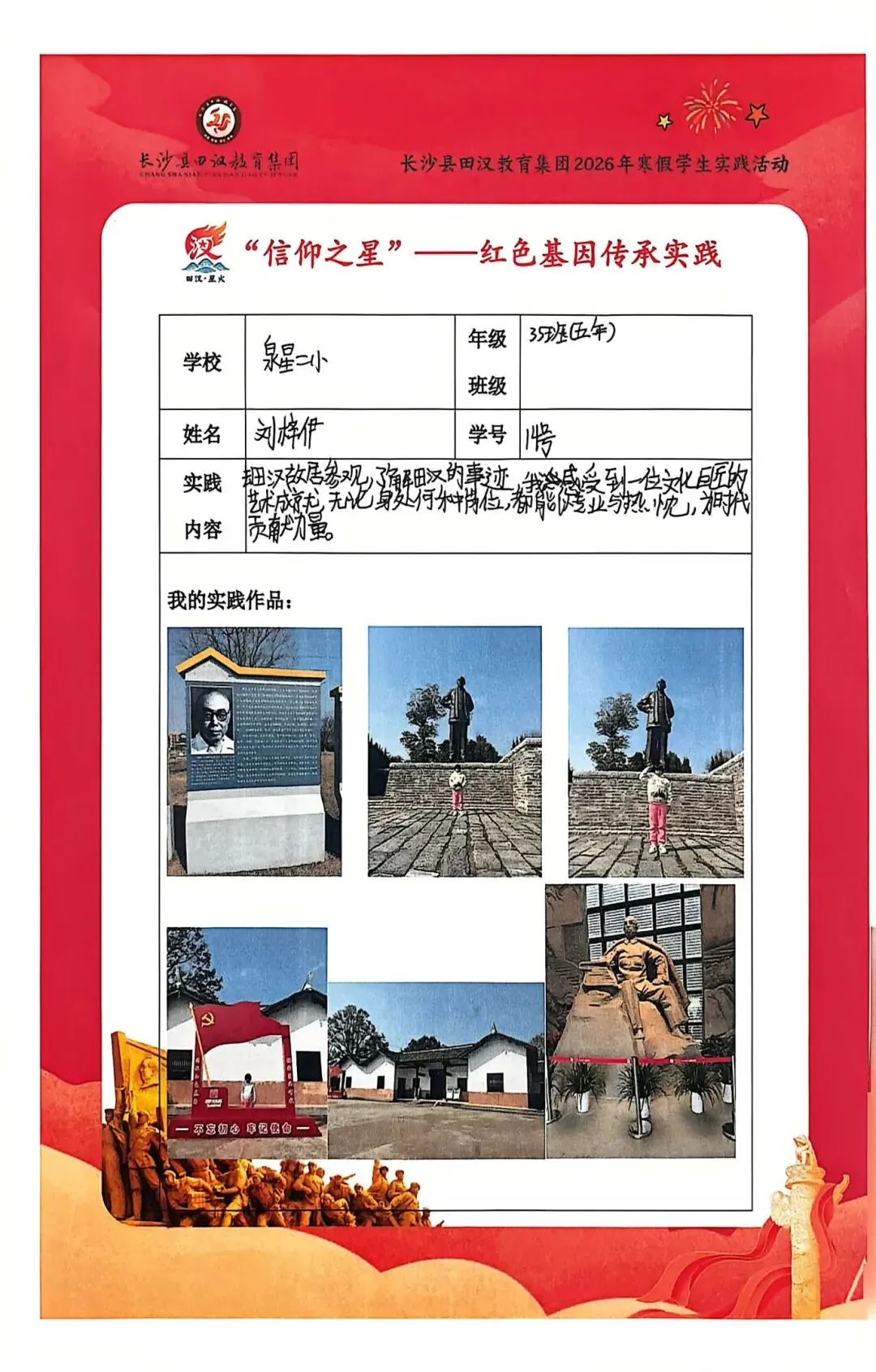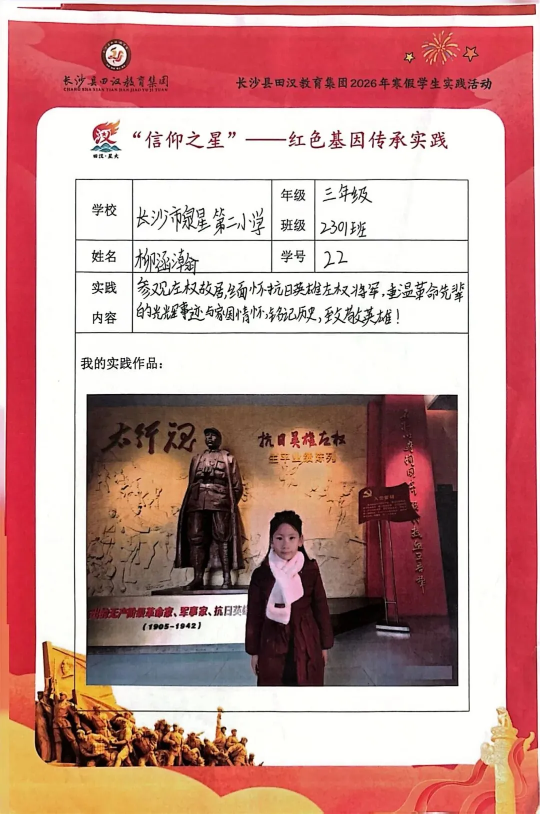 长沙县拥有丰富的红色文化、非遗资源与地域特色育人载体,是少先队员实践成长的广阔天地。寒假期间,队员们积极参与实践活动,在实践中增长才干、锤炼品格,用行动践行“田汉·星火”德育理念。下面,就让我们一起来欣赏这些优秀的实践成果吧!