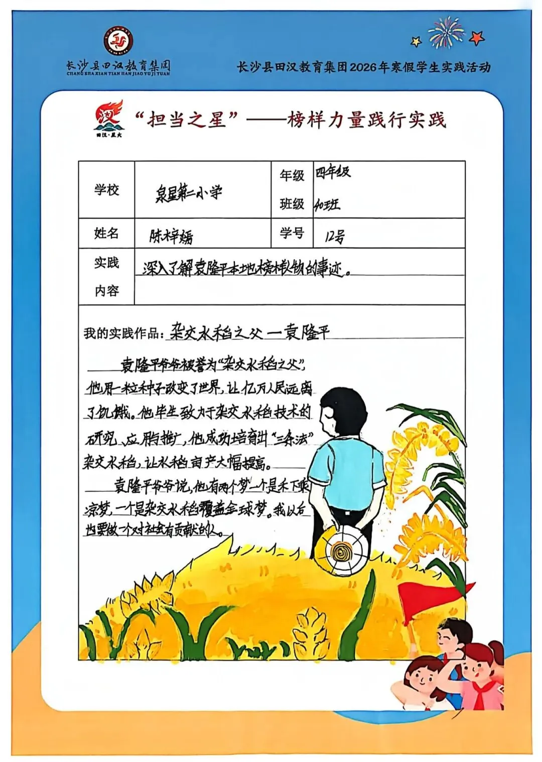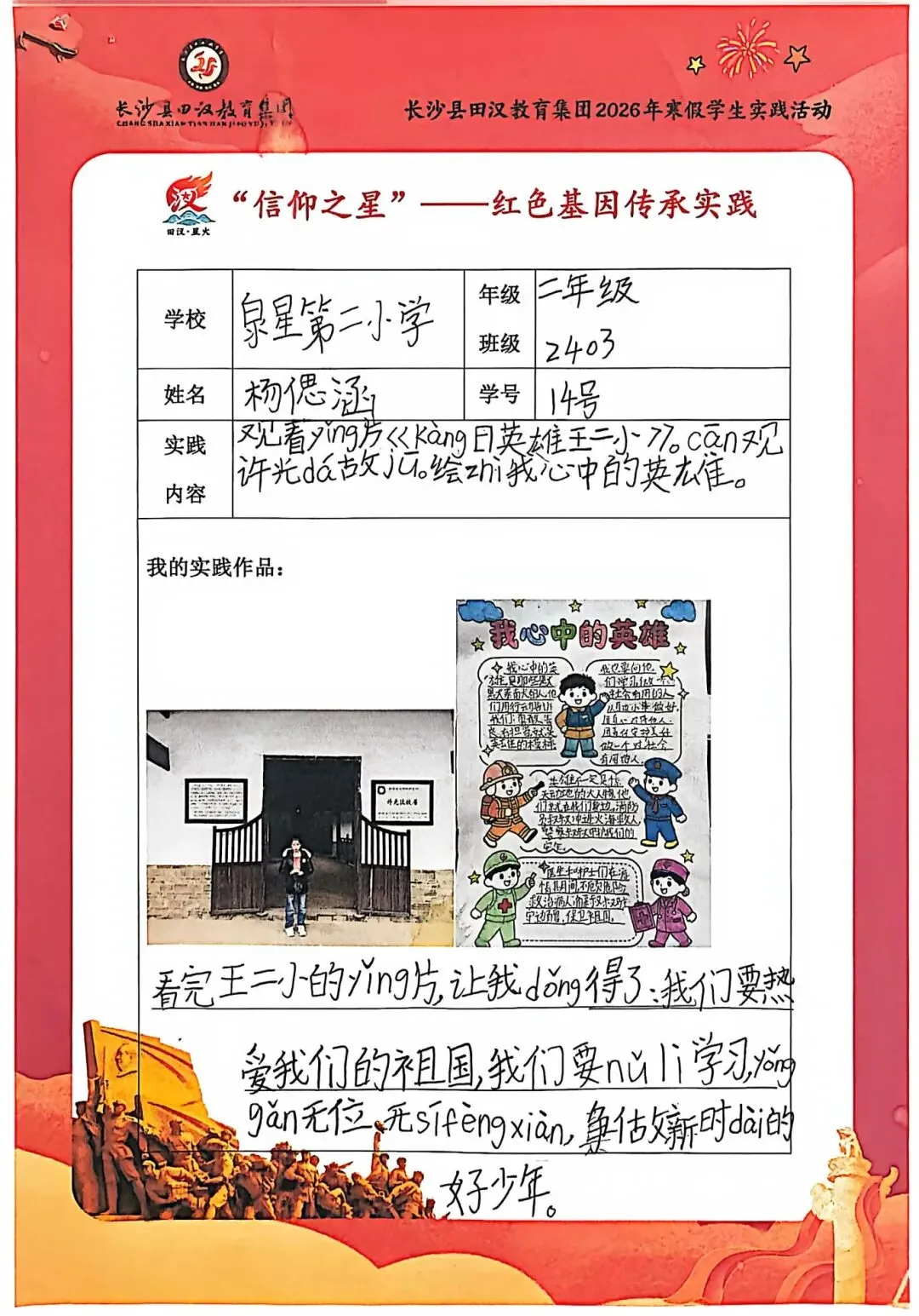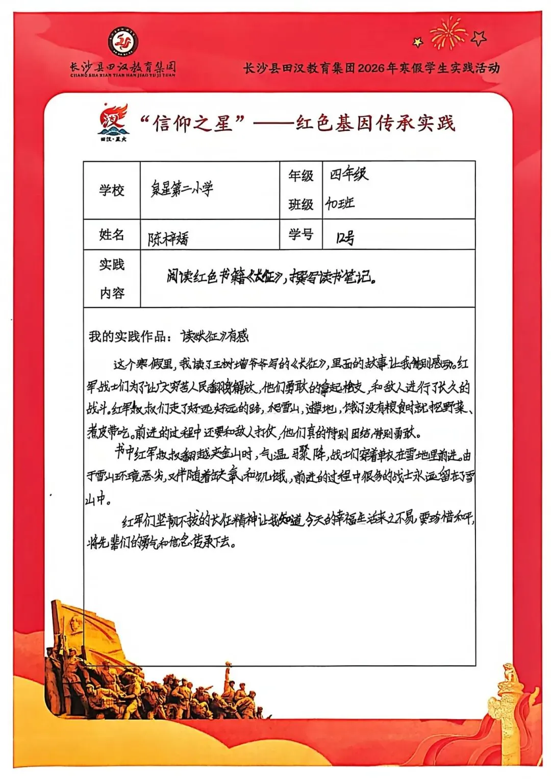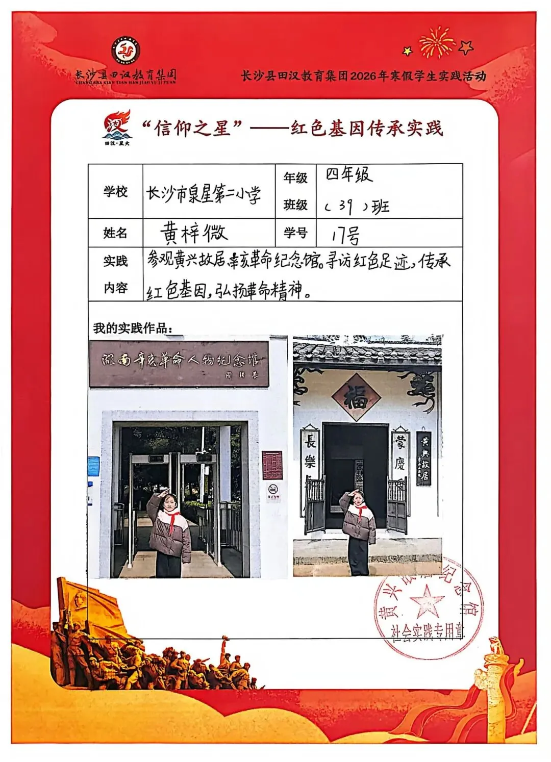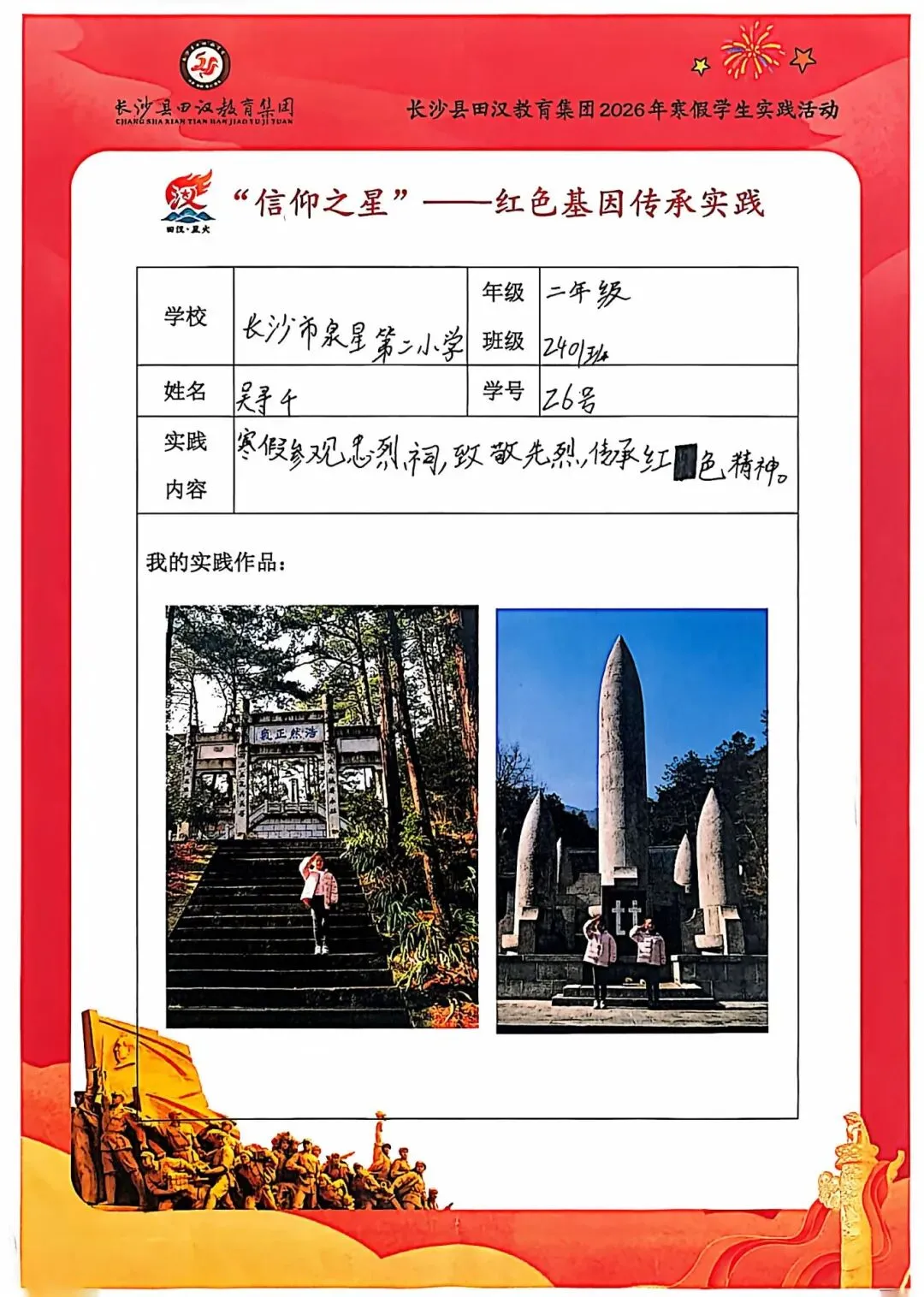 长沙县拥有丰富的红色文化、非遗资源与地域特色育人载体,是少先队员实践成长的广阔天地。寒假期间,队员们积极参与实践活动,在实践中增长才干、锤炼品格,用行动践行“田汉·星火”德育理念。下面,就让我们一起来欣赏这些优秀的实践成果吧!