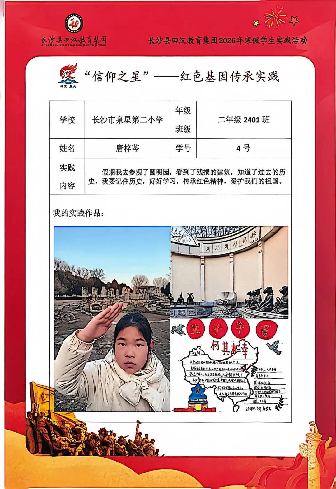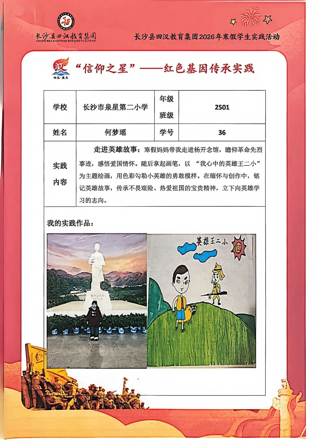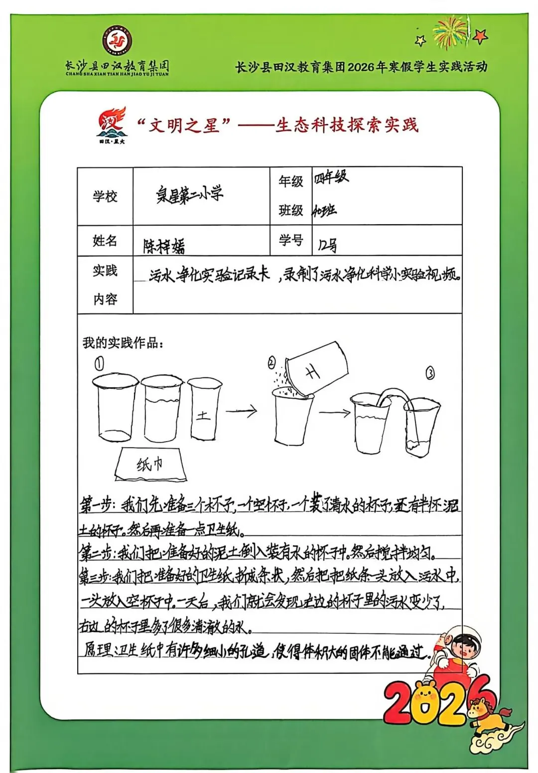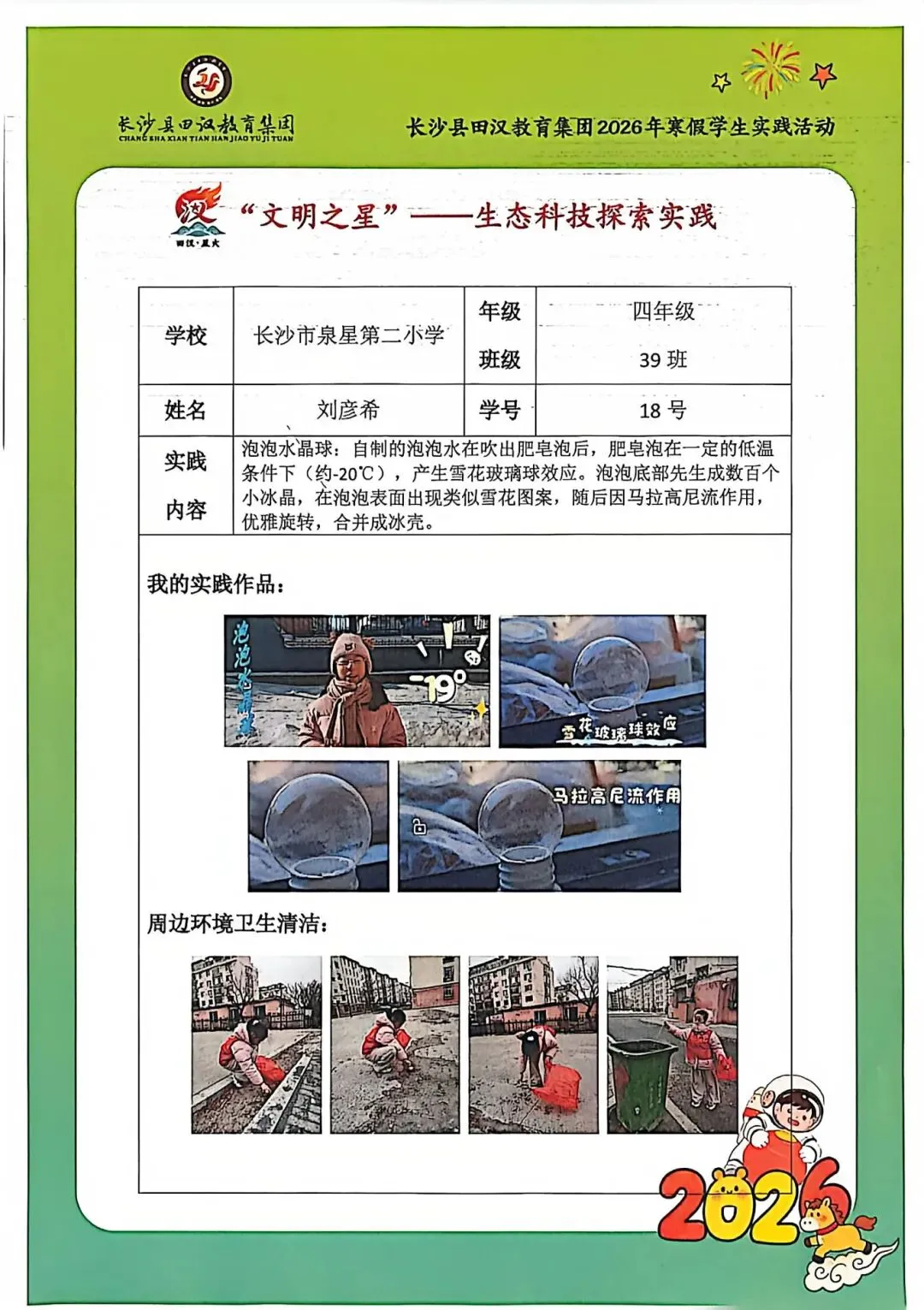 长沙县拥有丰富的红色文化、非遗资源与地域特色育人载体,是少先队员实践成长的广阔天地。寒假期间,队员们积极参与实践活动,在实践中增长才干、锤炼品格,用行动践行“田汉·星火”德育理念。下面,就让我们一起来欣赏这些优秀的实践成果吧!
