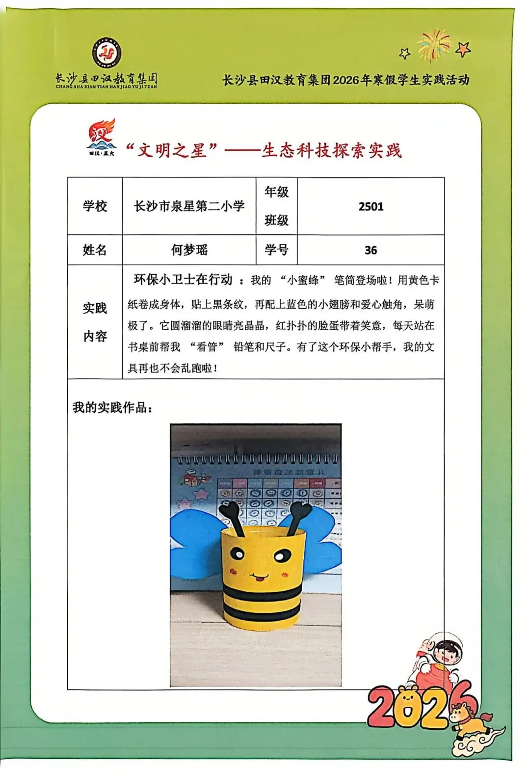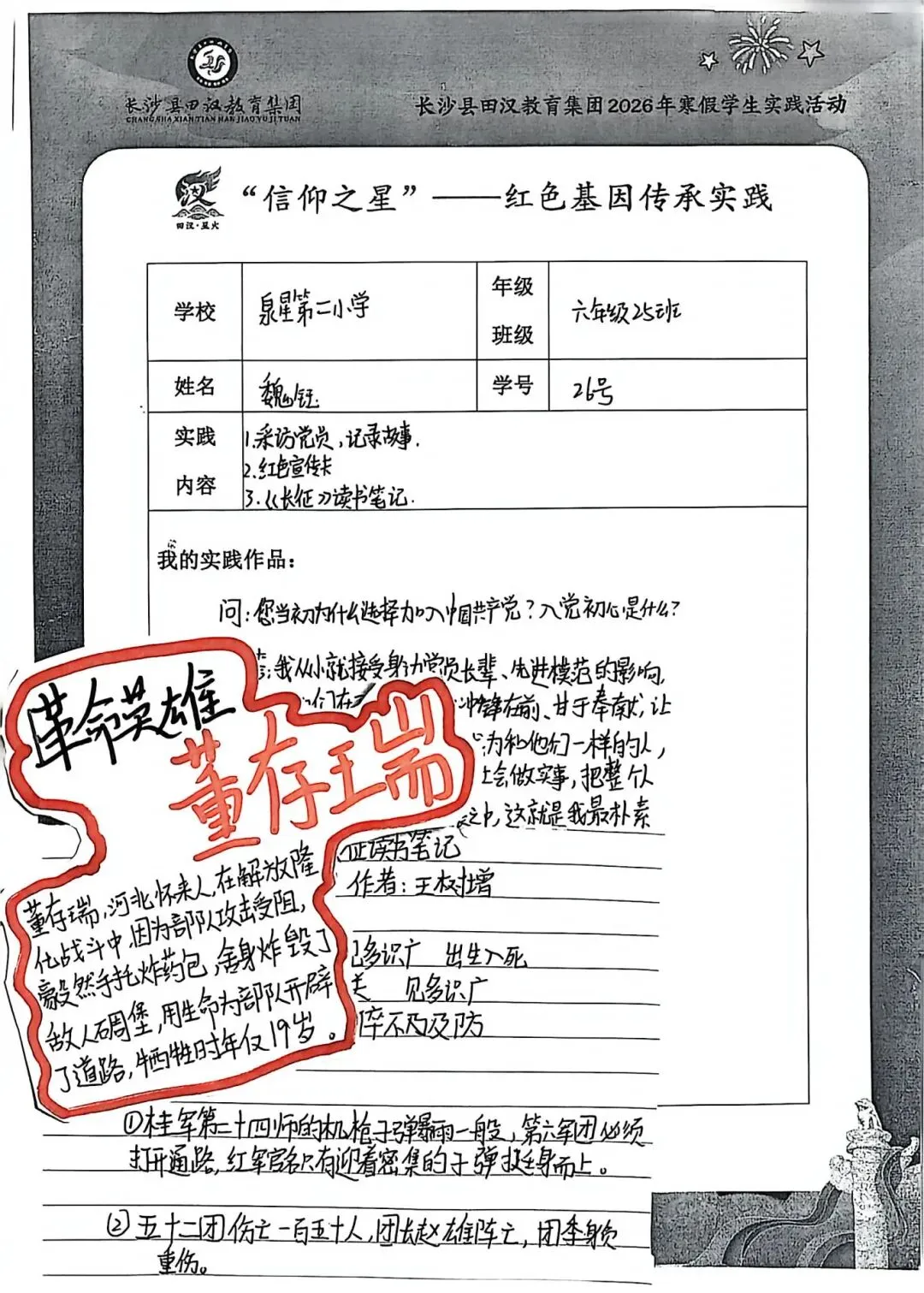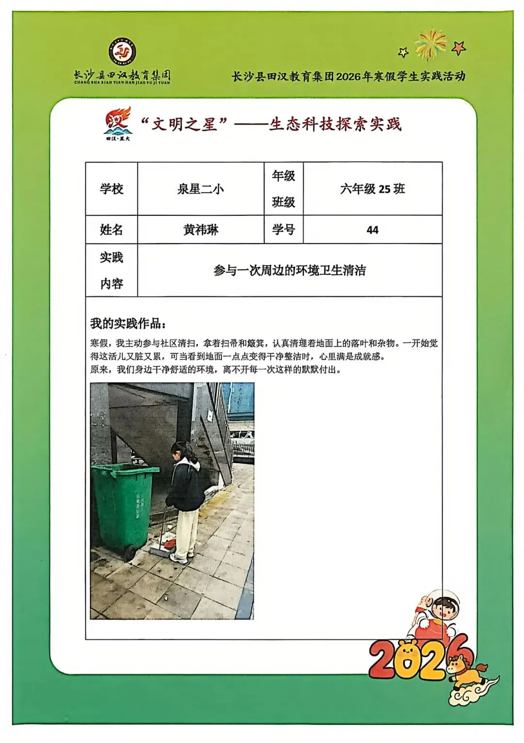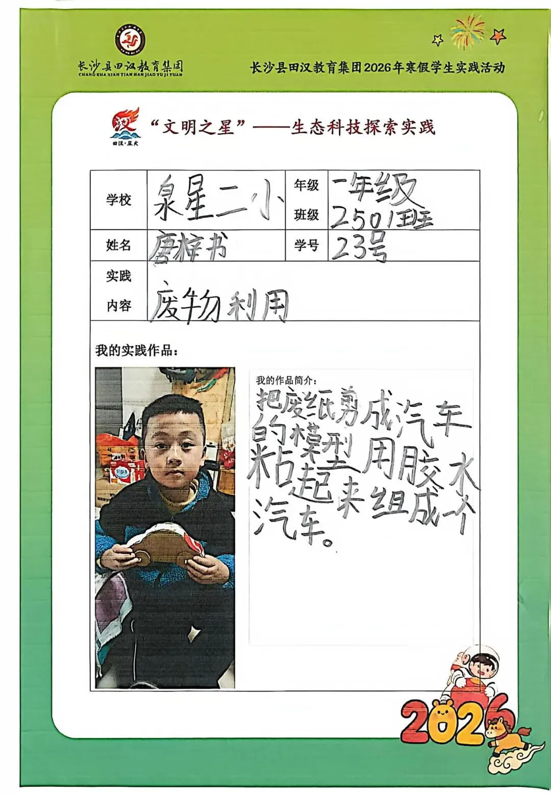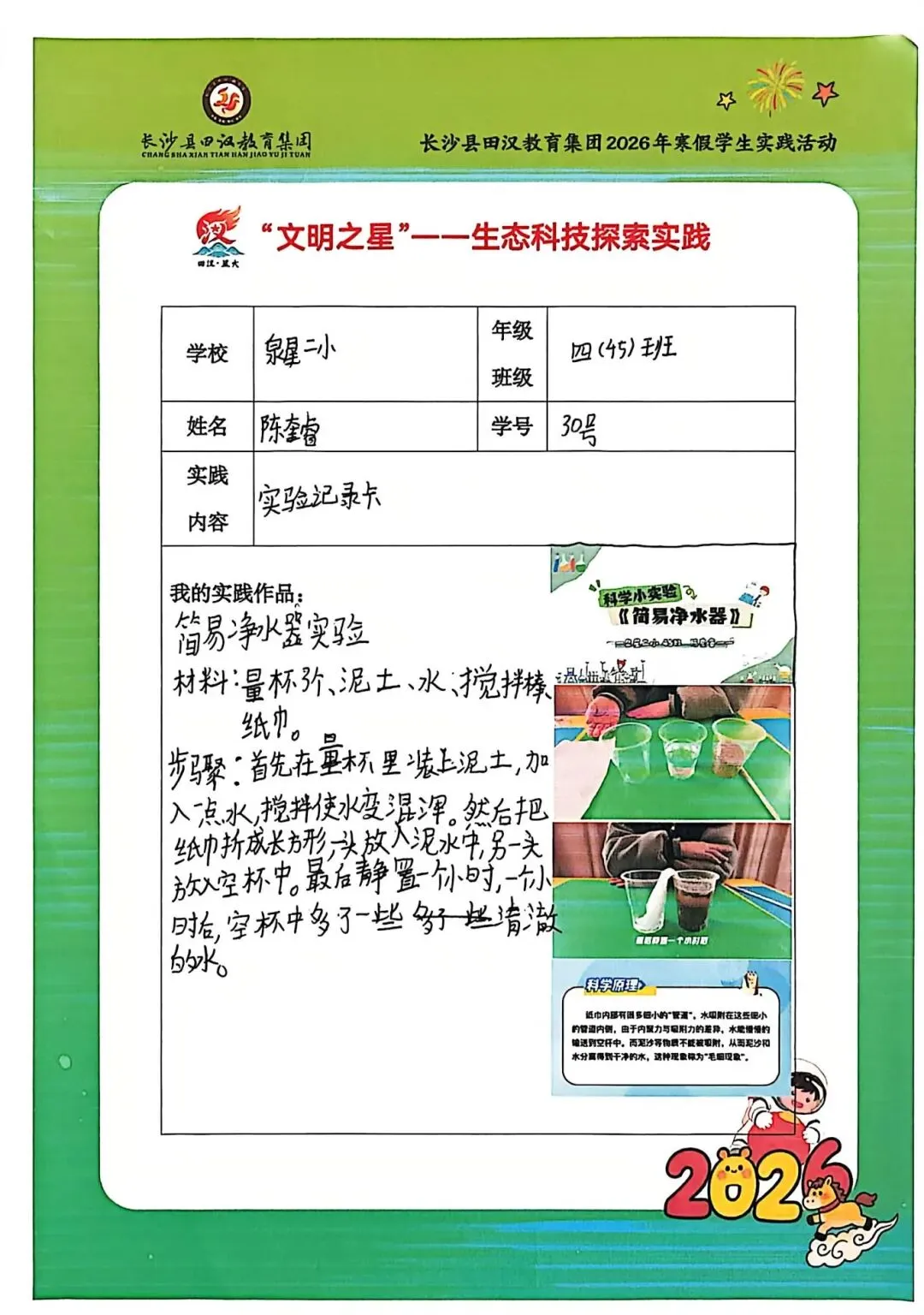 长沙县拥有丰富的红色文化、非遗资源与地域特色育人载体,是少先队员实践成长的广阔天地。寒假期间,队员们积极参与实践活动,在实践中增长才干、锤炼品格,用行动践行“田汉·星火”德育理念。下面,就让我们一起来欣赏这些优秀的实践成果吧!