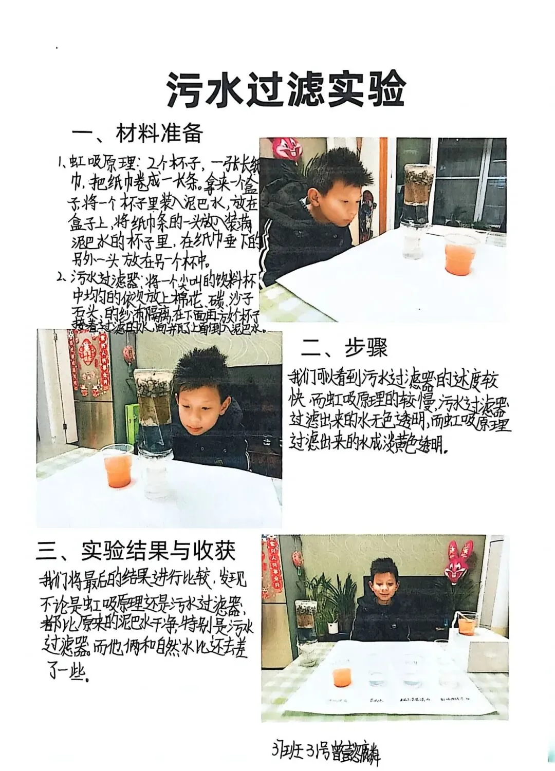 高年级队员以“小小科学家”的身份,完成了污水过滤、种子发芽对比等生态环保小实验,并用视频记录下实验过程与科学原理。