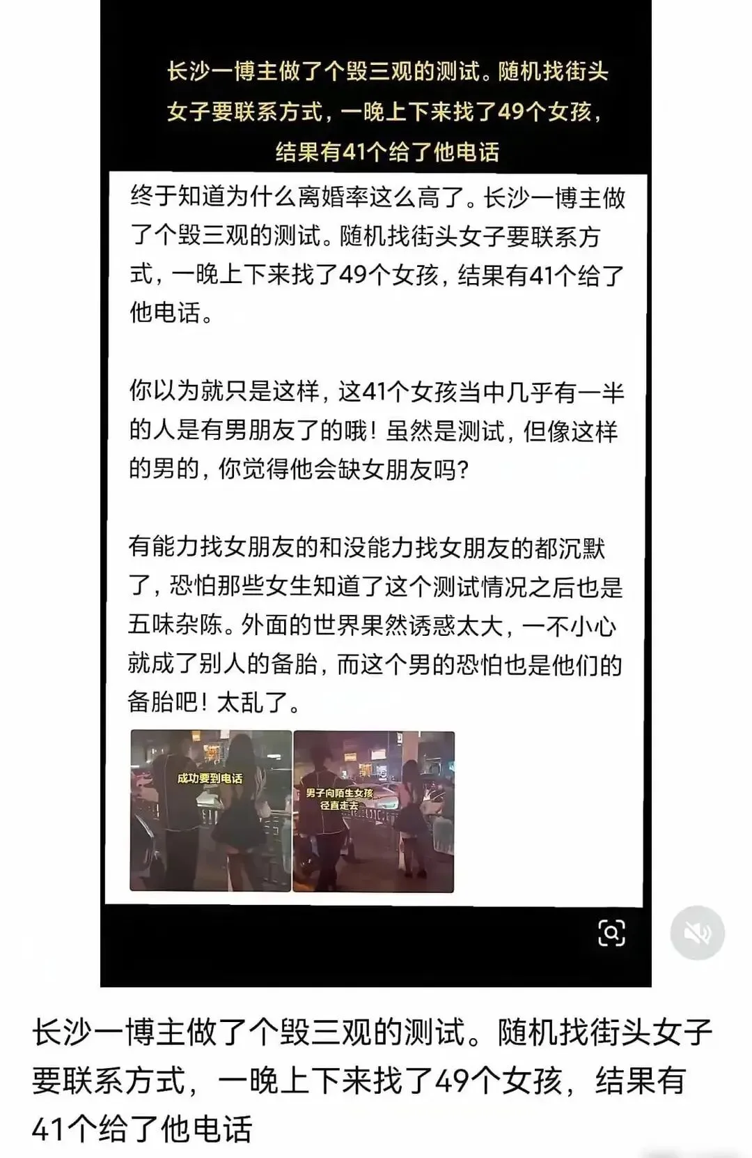 然而,可以明确的是,长沙博主所谓的“测试”,不过是一场低俗的流量把戏。将其作为离婚率高的“解释”,逻辑荒谬至极。