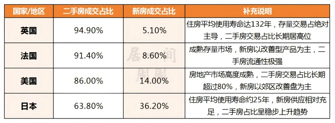 结合上图的发达国家成熟房地产市场成交数据不难看出,无论是英国、法国等二手房占比超90%的国家,还是日本这类新房供应相对充足的国家,二手房成交占比持续拉大都是城镇化后期的必然趋势,这也为长沙楼市的发展提供了清晰的参考方向。