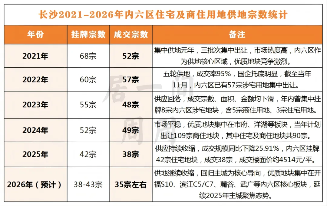 (长沙近5年内六区商住用地成交宗数统计)