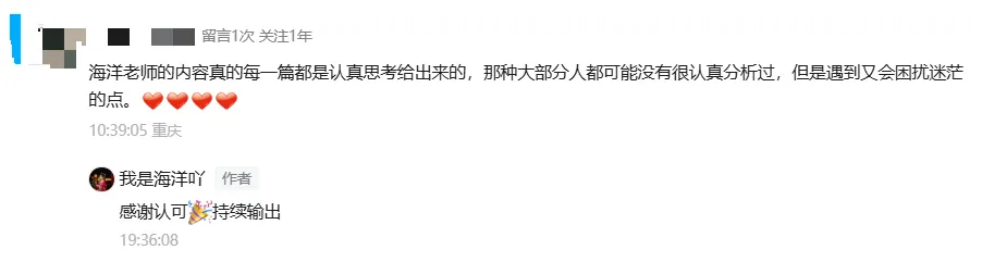 今天在后台收到了一个很暖心的评论,瞬间觉得写作的动力又拉满了~