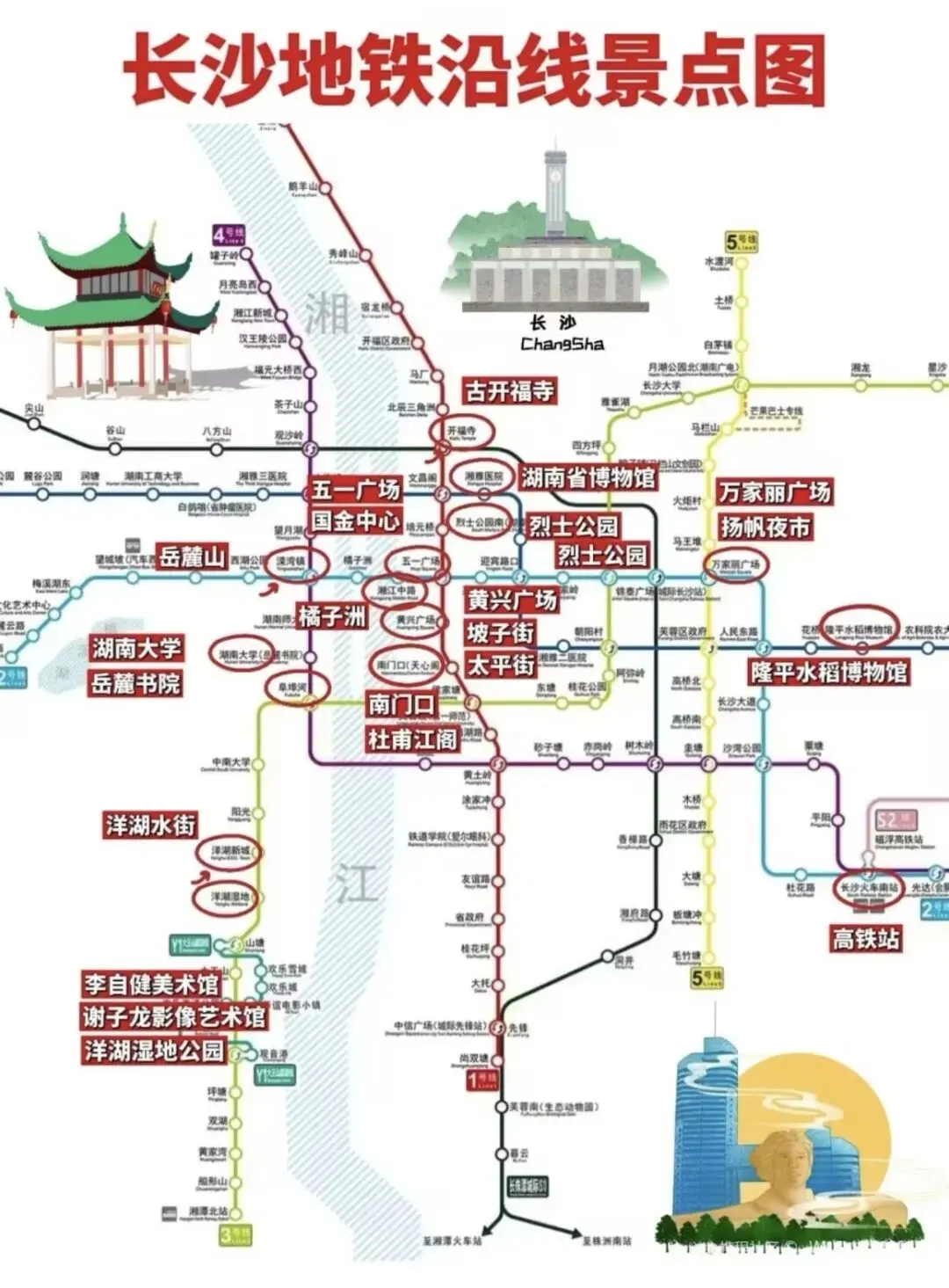 直达五一广场、橘子洲、岳麓山等顶级文旅地标,是游客与通勤族的核心线路。
