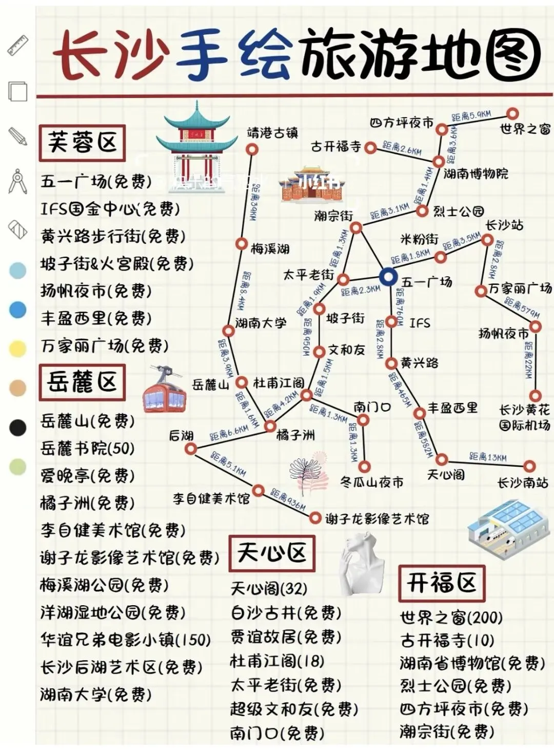跨望城区、岳麓区、天心区、雨花区、长沙县;串联岳麓山、橘子洲、汉王陵公园等景点,覆盖湖南师大、湖南大学等高校,直达长沙火车南站;