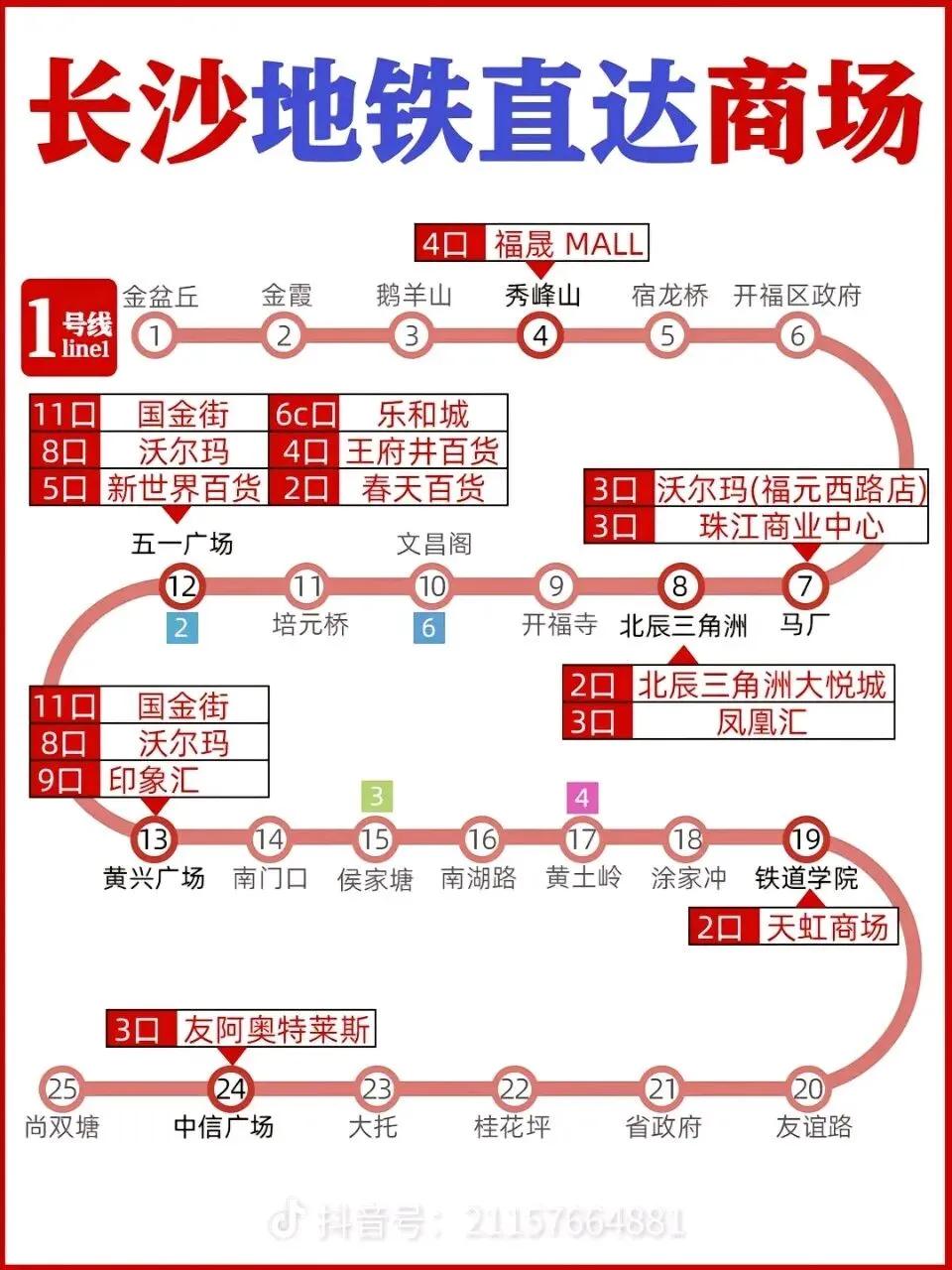 串联开福、芙蓉、天心、雨花四区,覆盖五一广场、黄兴广场、南门口等核心商圈,以及开福寺、天心阁等景点;北延段直达铜官窑片区,强化城北通勤与文旅出行。