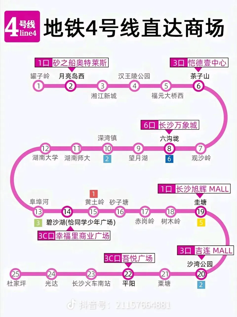 4号线(紫色):罐子岭—杜家坪,串联望城、岳麓、天心、雨花;