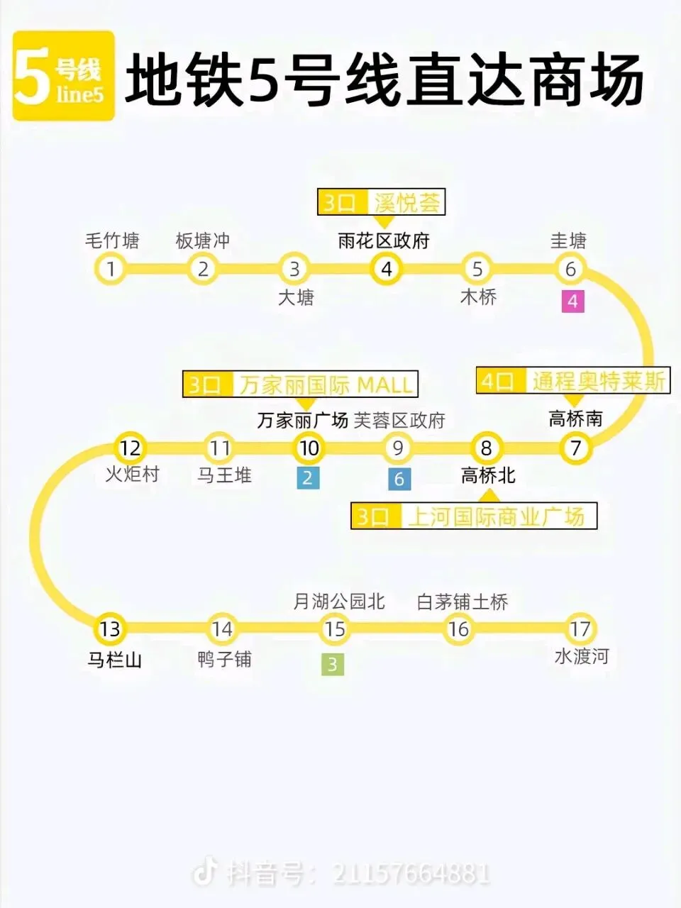 5号线(黄色):水渡河—毛竹塘,服务城北至城南通勤;