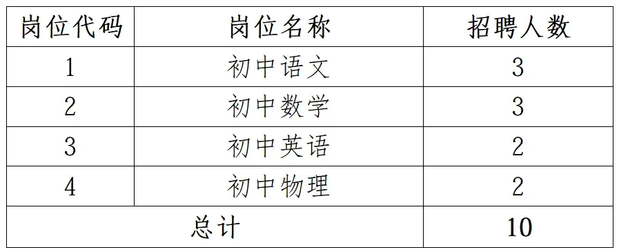 此次招聘岗位4个,招聘计划10名,具体见下表: