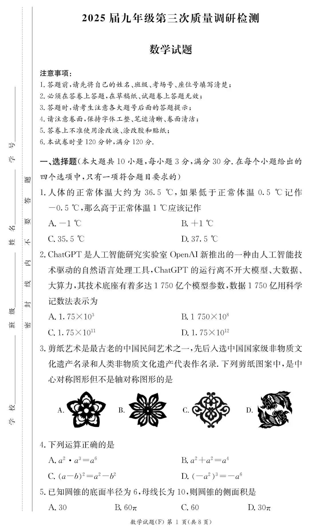 【真题汇总】——2025年长沙九年级下册入学检测数学试卷+参考答案(免费领取)