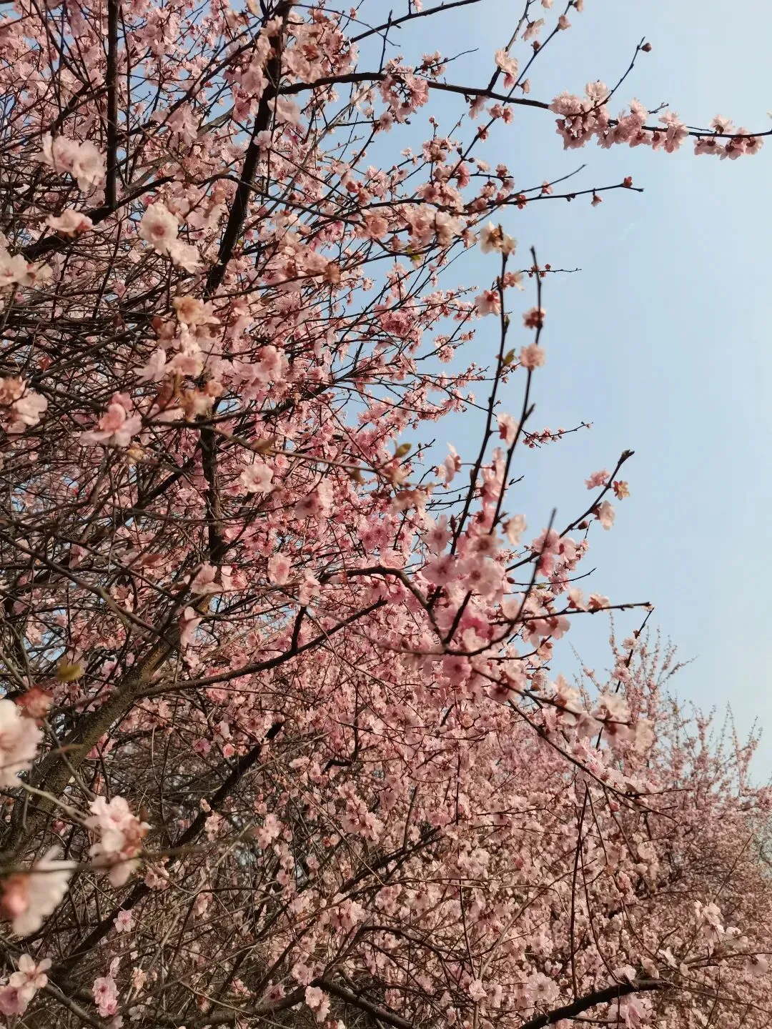 附近有一个钓鱼基地,紧邻着一片约摸三十亩的梅林,正是春天美不胜收的时候,正是美人梅开得正艳的时候。许多人在园林中散步拍照,汉服拍照也临时在园子里摆开了生意,于是,在清香的梅林中,时不时地还能邂逅"杨贵妃""林黛玉"等等古装人物,平添了许多乐趣。