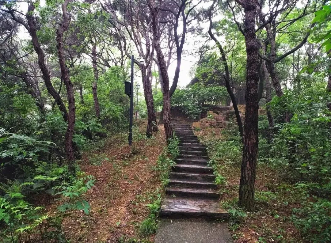傍晚的余晖洒在猴子山、扇形山上,我们沿着登山步道慢慢往上走。山不高,海拔不过几十米,小径纵横交错,像藏着小小的迷宫。