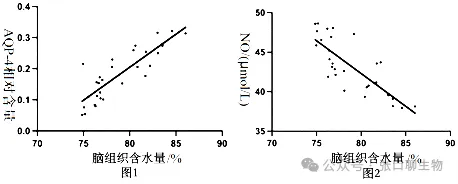 7. 脑脊液是脑细胞生存的直接环境,相当于细胞间隙液。脑水肿与脑脊液增多有关,其发病机制之一是脑外伤时毛细血管通透性增高。进一步研究发现,脑水肿还与水通道蛋白AQP-4、血管活性物质NO(由血管内皮细胞产生)有关,二者与脑组织含水量的相关性如图1、图2所示。下列叙述错误的是( )