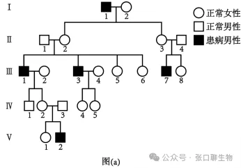 (1)据图可知,图中的Ⅱ-1和Ⅱ-2均正常,但是Ⅲ-1患病,说明该病是隐性遗传病,又因为系谱图中该家系患者表现为隔代遗传,且患者均为男性,故该遗传病的遗传方式最可能为伴X染色体隐性遗传。