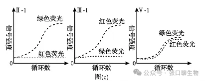 18. 腓骨肌萎缩症(CMT)是一种由GJB1 基因突变导致其编码的CX32蛋白异常引起的外周神经系统遗传病。某地区发现了一个CMT家系,如图(a)所示。对健康个体和患者的GJB1 基因进行测序,图(b)表示该基因编码序列(与模板链互补)的第 601—620 位碱基(已知第一位碱基开始编码氨基酸)。TaqMan荧光探针结合实时荧光定量 PCR技术可检测单碱基突变,用红色/绿色荧光探针分别标记GJB1 基因有/无突变的核酸序列,当PCR循环数增多时,相应的荧光信号逐渐积累,图(a)家系中部分个体检测结果如图(c)所示。回答下列问题。