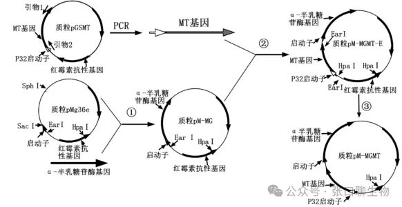 (1)根据图示,利用PCR技术扩增MT基因,质粒pGSMT 含有MT基因,在反应体系中的作用是提供模板,根据限制酶Sac I的识别序列及切割位点可知,限制酶Sac I酶切后的黏性末端为3'-TCGA-5'。