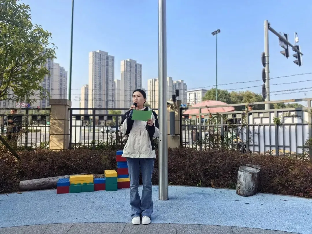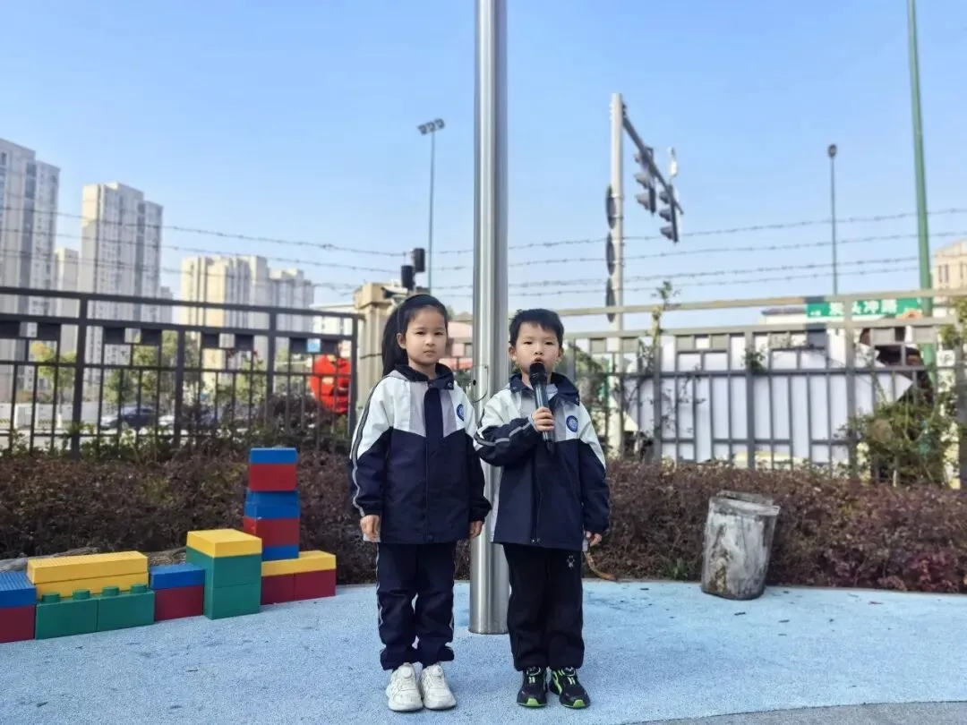 伴随着温暖的春风,在主持人杨老师的有序主持下,活动正式开启,首先进行庄严的升旗仪式,五星红旗冉冉升起。教师代表舒老师,幼儿代表丁弈羽和赵恬漫小朋友,依次进行国旗下讲话,他们用生动易懂的语言,向孩子们传递爱绿、护绿、亲绿的环保理念。