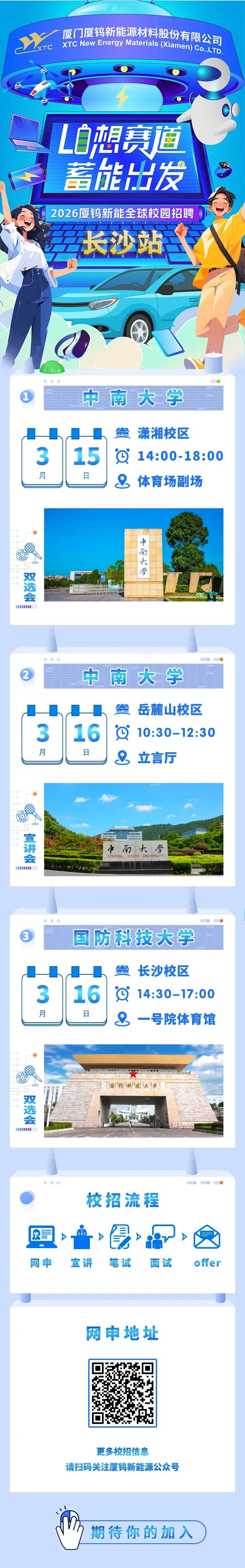 长沙站 | 厦钨新能源2026春季校园招聘行程