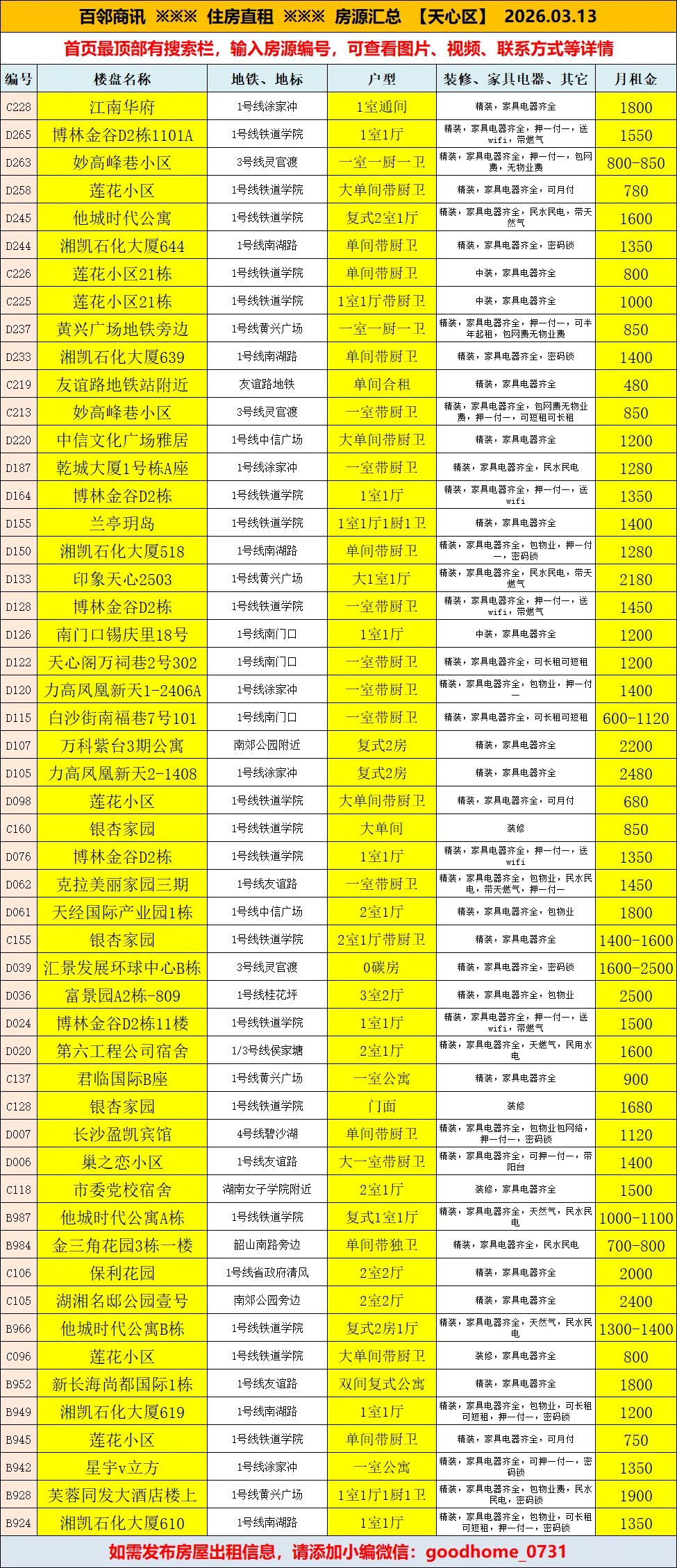 天心区住房直租汇总