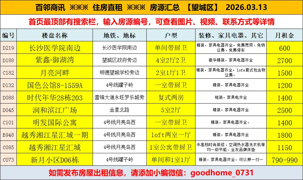 望城区住房直租汇总