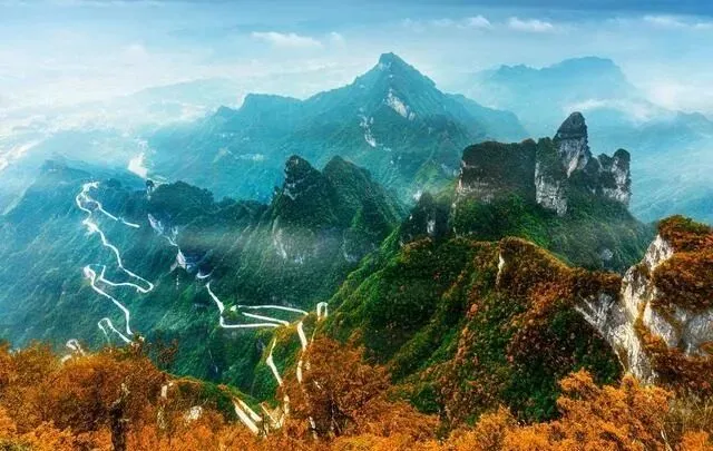 山下那条通天大道有九十九弯,俯瞰像银蛇,拍照别站到路边去。