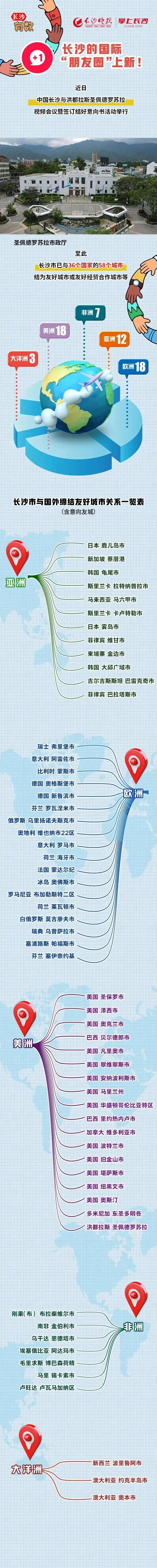 至此,长沙市已与36个国家的58个城市结为友好城市或友好经贸合作城市等。