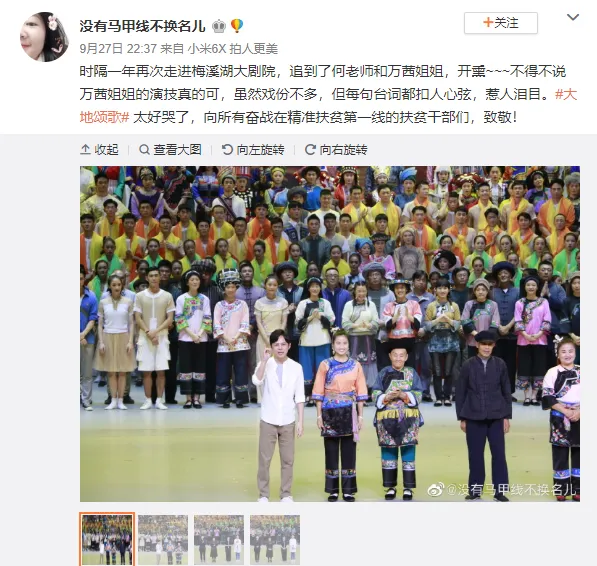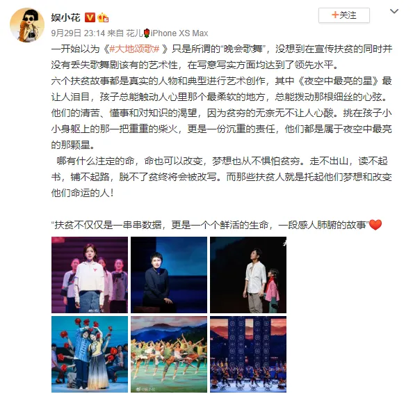 剧中,谷智鑫饰演的是驻十八洞村扶贫干部龙书记——一个有血有肉的扶贫干部经典形象。万茜深情演绎一位“真正意义上的乘风破浪的姐姐”——义务扶贫人王新法的女儿王婷。廖佳琳饰演的是十八洞村村民廖天宝,他在剧中亮出高腔,唱出村民“脱贫也脱单”的喜悦之情。从湖南卫视原创舞蹈电视竞技节目《舞蹈风暴》中走出来的舞者刘迦、张渊博也在剧中有精彩的独舞演绎。除此之外,何炅、张凯丽等人也出现在剧中,为观众带来震撼和感动。演出结束后,很多观众也在网络上发表了自己的肺腑点评,一句句走心的话语,也触碰到我们内心深处最柔软的角落。“康康我们的美好生活”