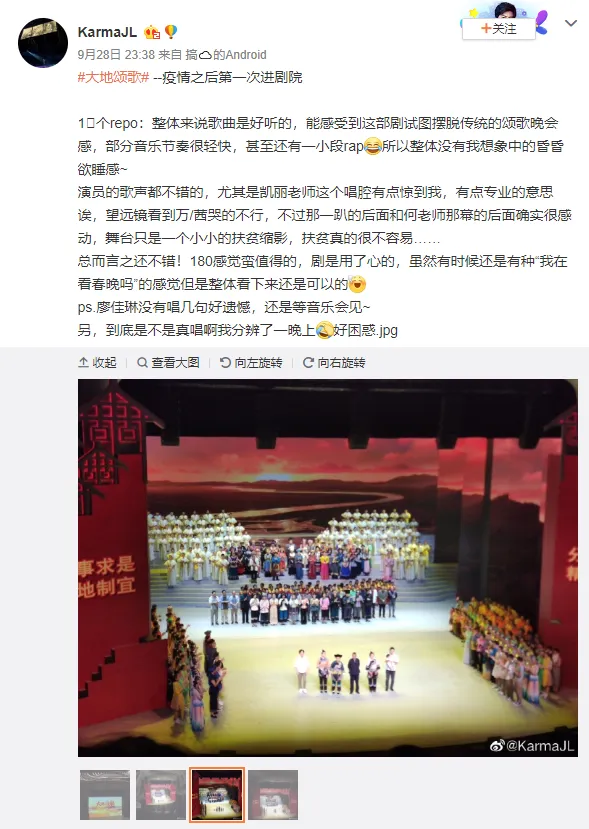 这部以扶贫路上涌现出的真实人物和典型事例为原型进行艺术创作的文艺作品,用真情实感的演绎打动着每一位观众。很多情节令观众流下了感动的热泪。《大地颂歌》预告片