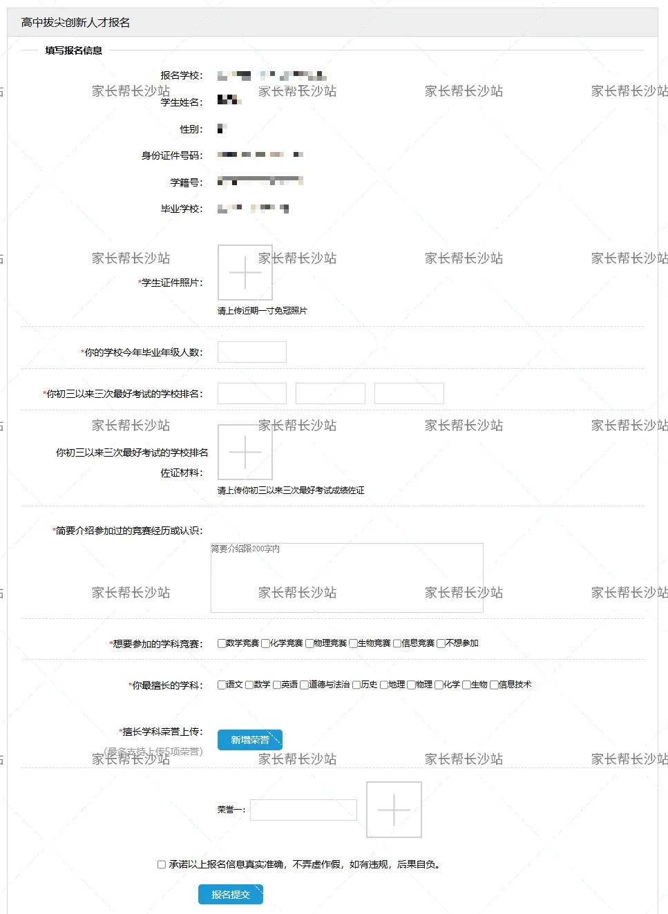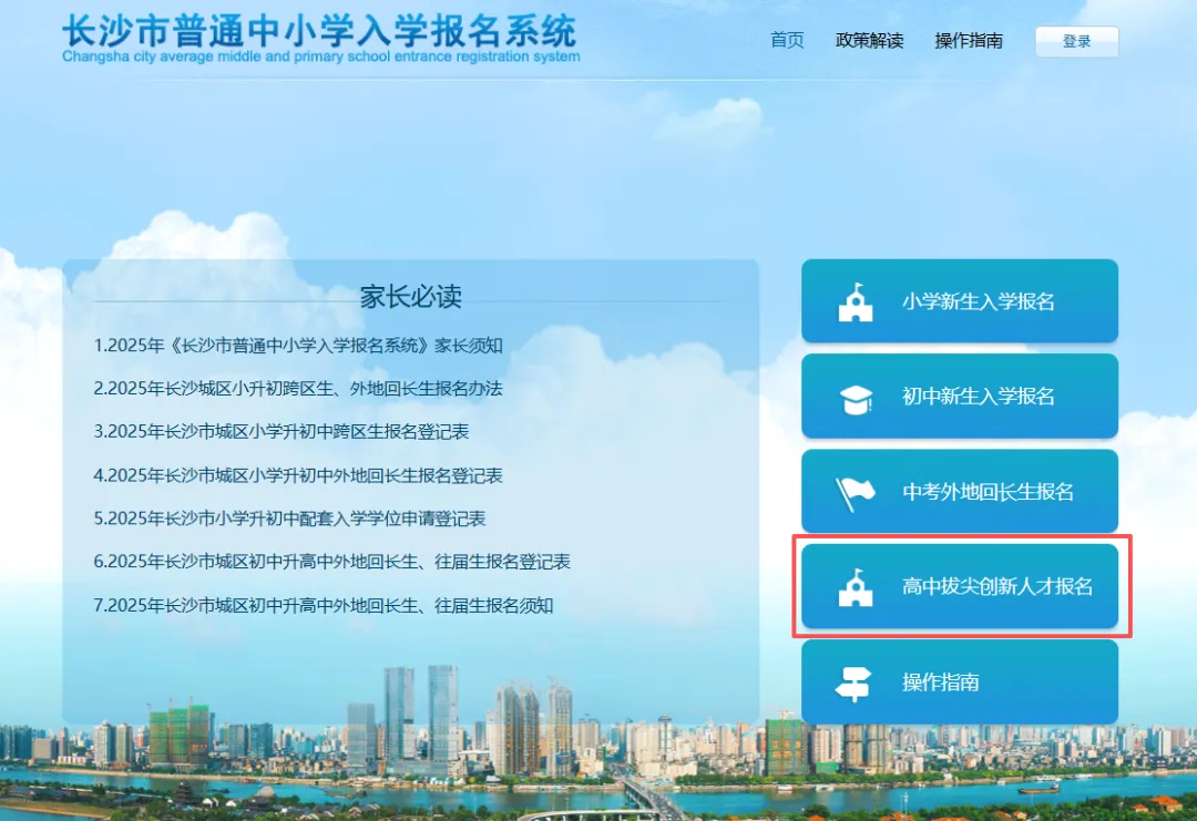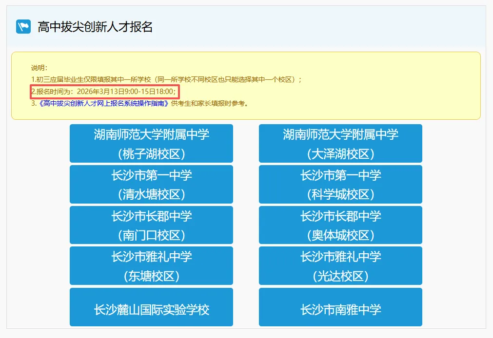 今日上午9点,长沙高中拔尖创新人才报名通道开放了,有意向的家长可以登录系统报名!