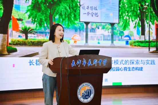 长郡中学梁琪老师为大家分享学校“四维一体”心育工作模式的探索与实践,该模式从积极心理学中的“心理资本”理念出发,将学校定位为学生注入希望(Hope)、效能(Efficacy)、韧性(Resilience)和乐观(Optimism)四大核心心理资本的“储蓄所”,构建了全方位、立体式的“HERO心育赋能生态”。